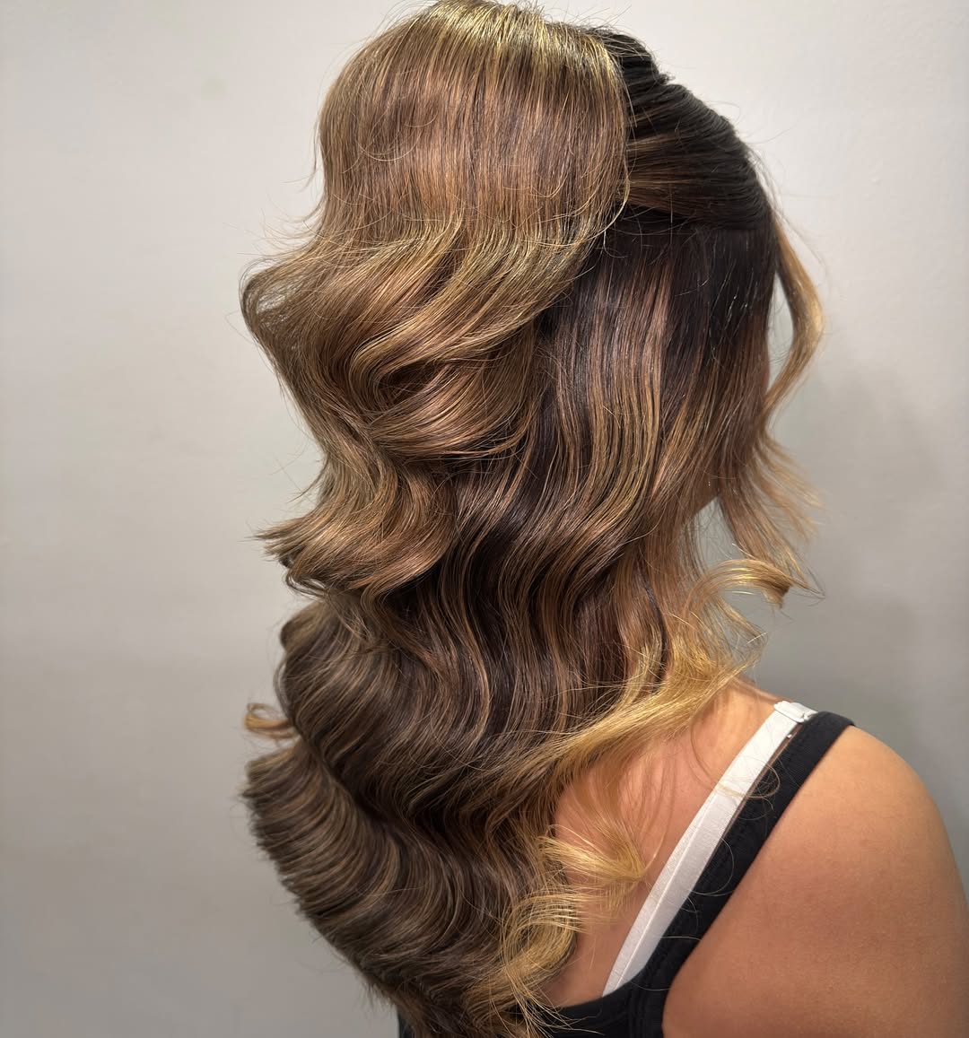 If you’ve got long hair, this silhouette really works. And those smooth curls? They’re great for bringing out the highlights in your hair. The hairstyle also makes a perfect base for a hair accessory.