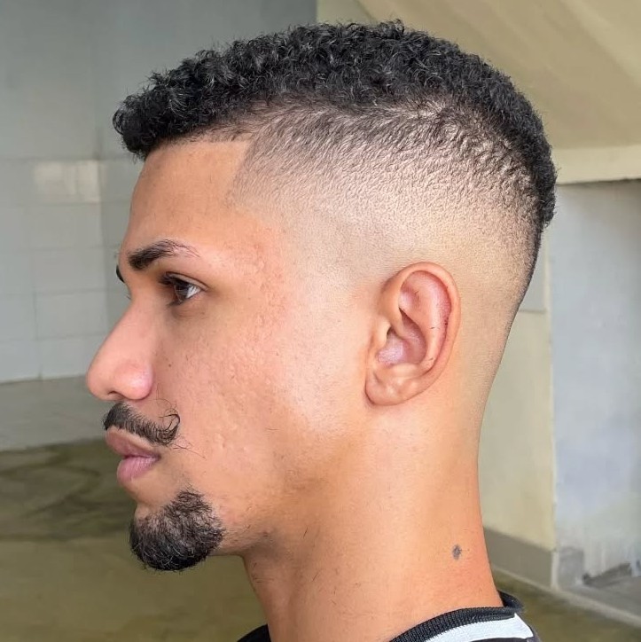 You’ve certainly seen this cut on NBA players. Curly hairstyles with an afro top are an incredibly hot style right now, mixing together both natural black coils with clean sides and edges.