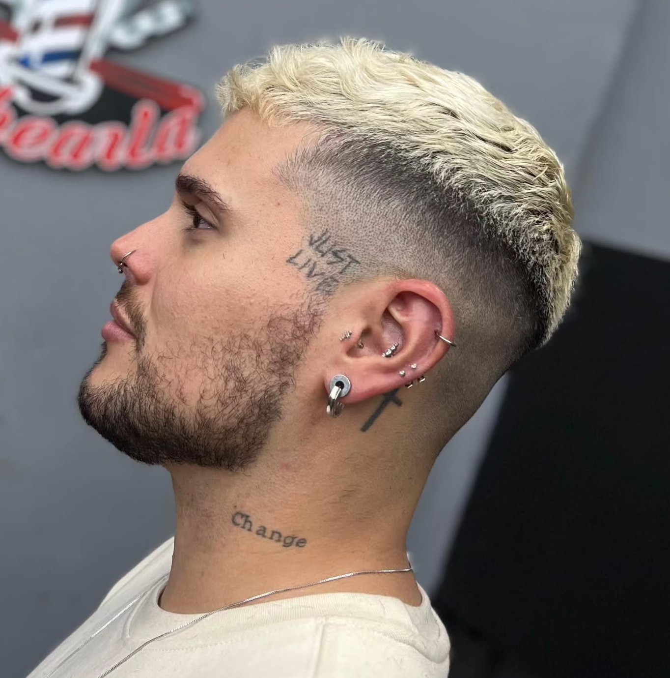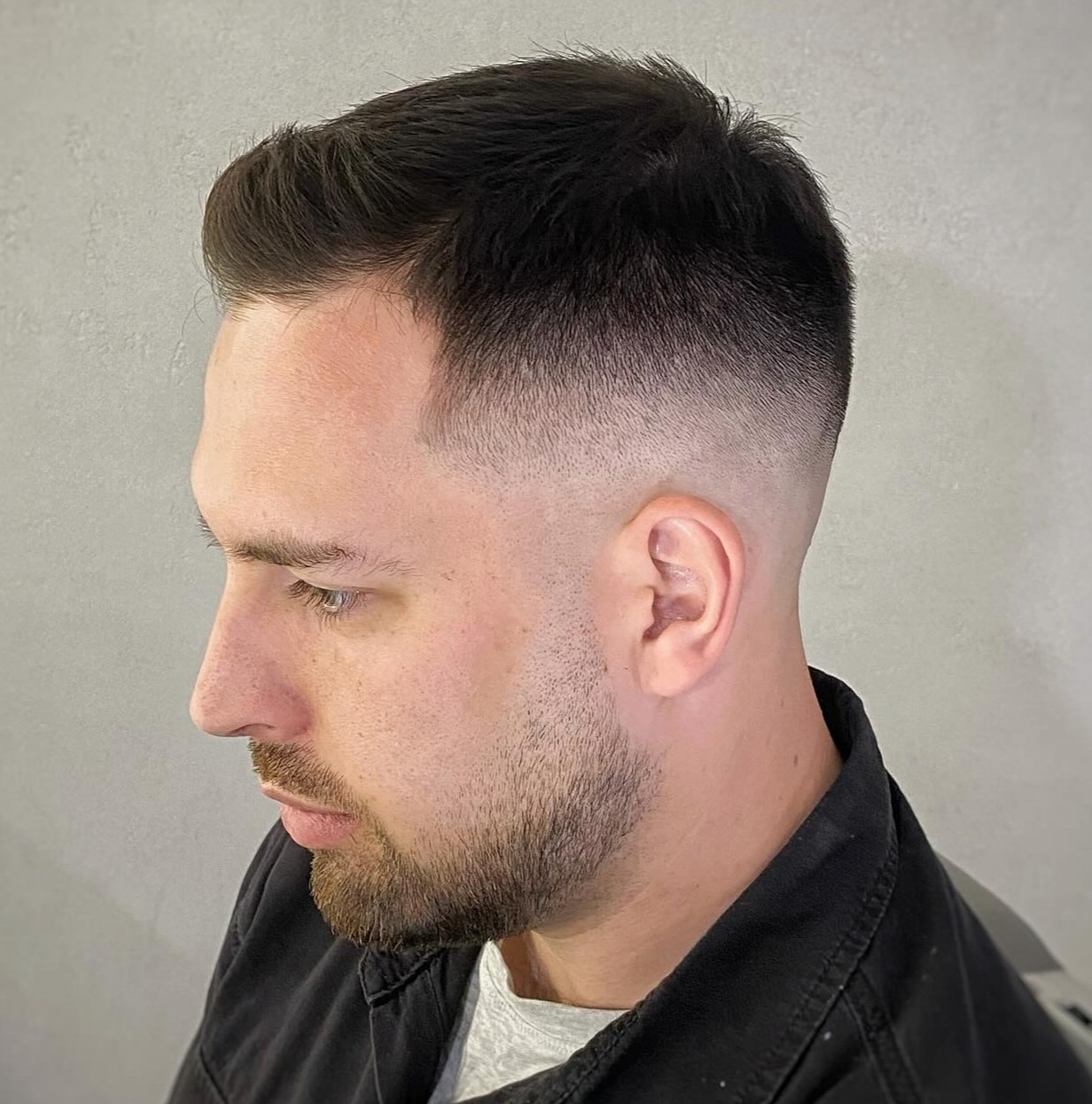 Precision defines this style. The line-up should look ruler-straight, creating sharp, clean edges around your hairline. Keep the top section to about one inch for a tight, close crop. Match your beard fade to your hair fade for a cohesive, well-groomed appearance.