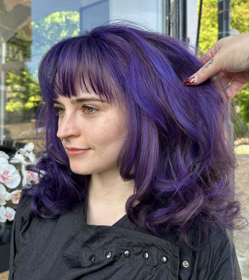 Different shades of purple have varying undertones; warm purples with pink distribution may fade to soft purple-pink tones, while cool purples with blue undertones can leave a stubborn blue-green stain on pre-lightened hair. While some may embrace this bluer tone, clear communication with your stylist ensures you achieve the perfect purple shade that you'll love long after it's faded.”