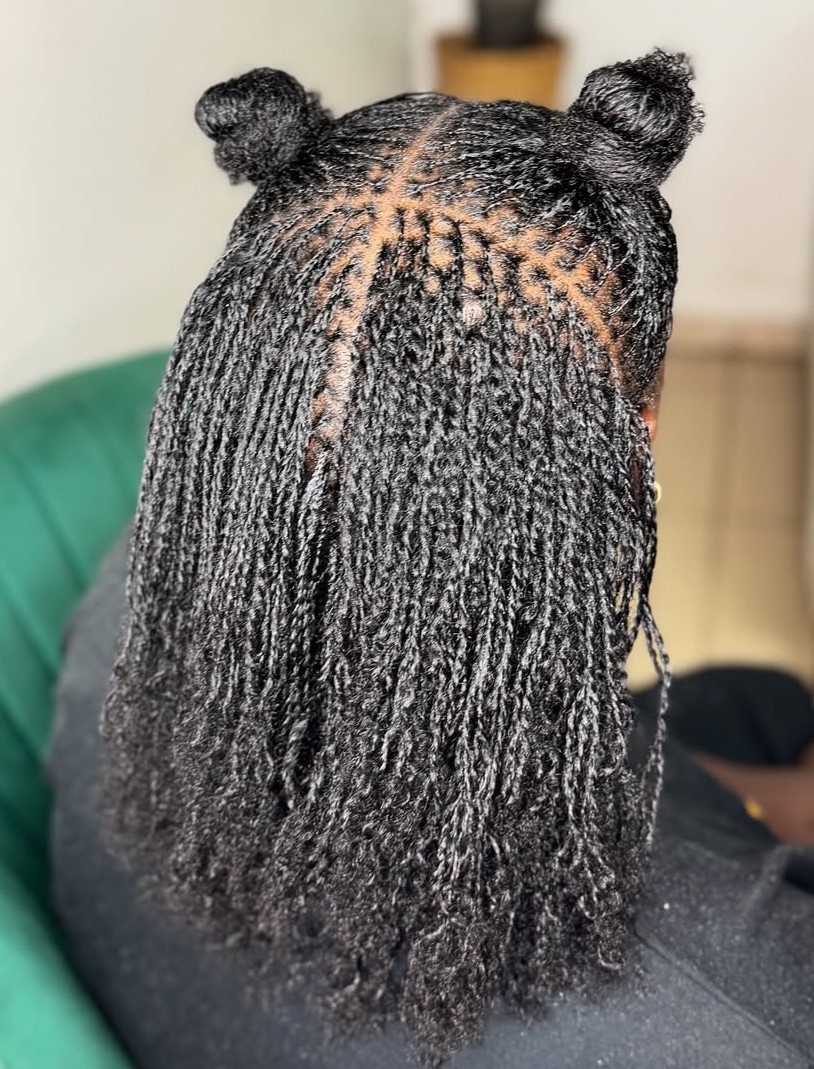 Micro braiding can take on many, many forms (one of its best characteristics), with short, cropped cuts being one of them. Playing with color safely is also among the perks!