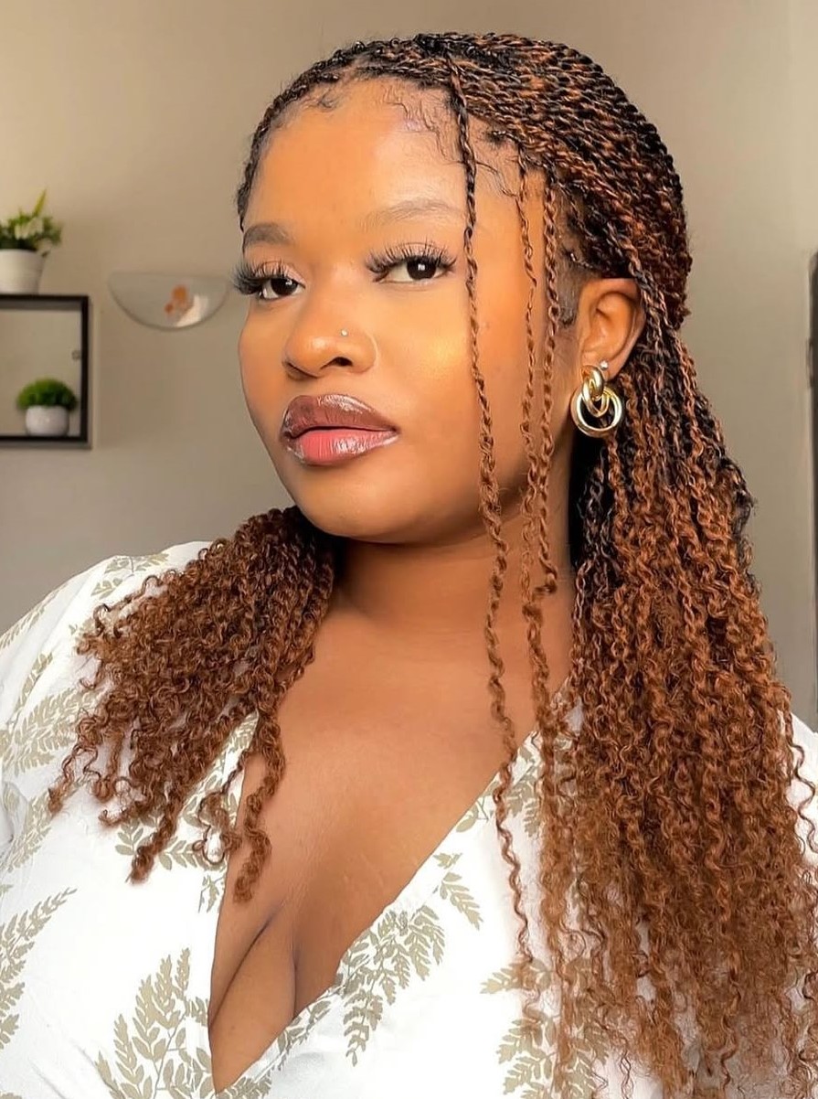 Curly braids with Freetress hair may give you the look you are after – long textured waves that can be worn loose and carefree or pulled up into a pony.