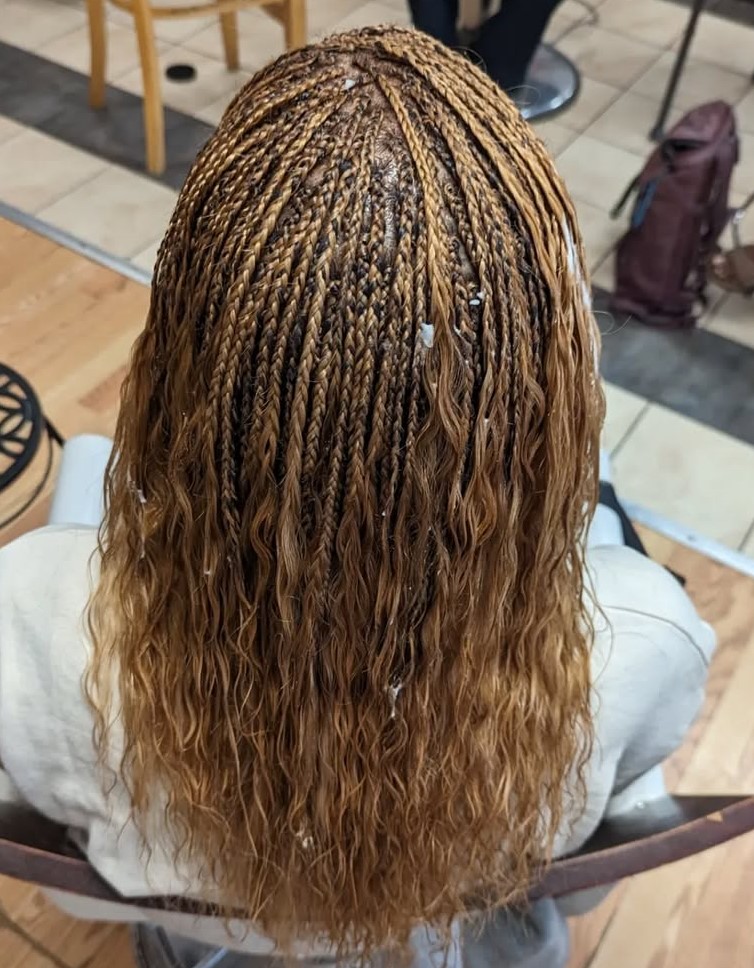 Micro braiding can take on many, many forms (one of its best characteristics), with short, cropped cuts being one of them. Playing with color safely is also among the perks!