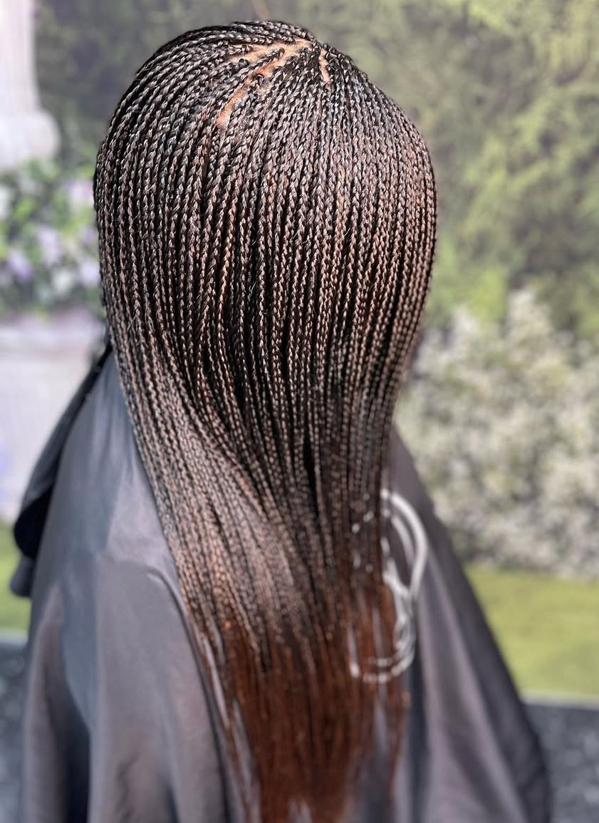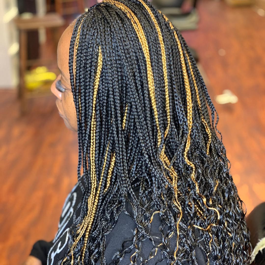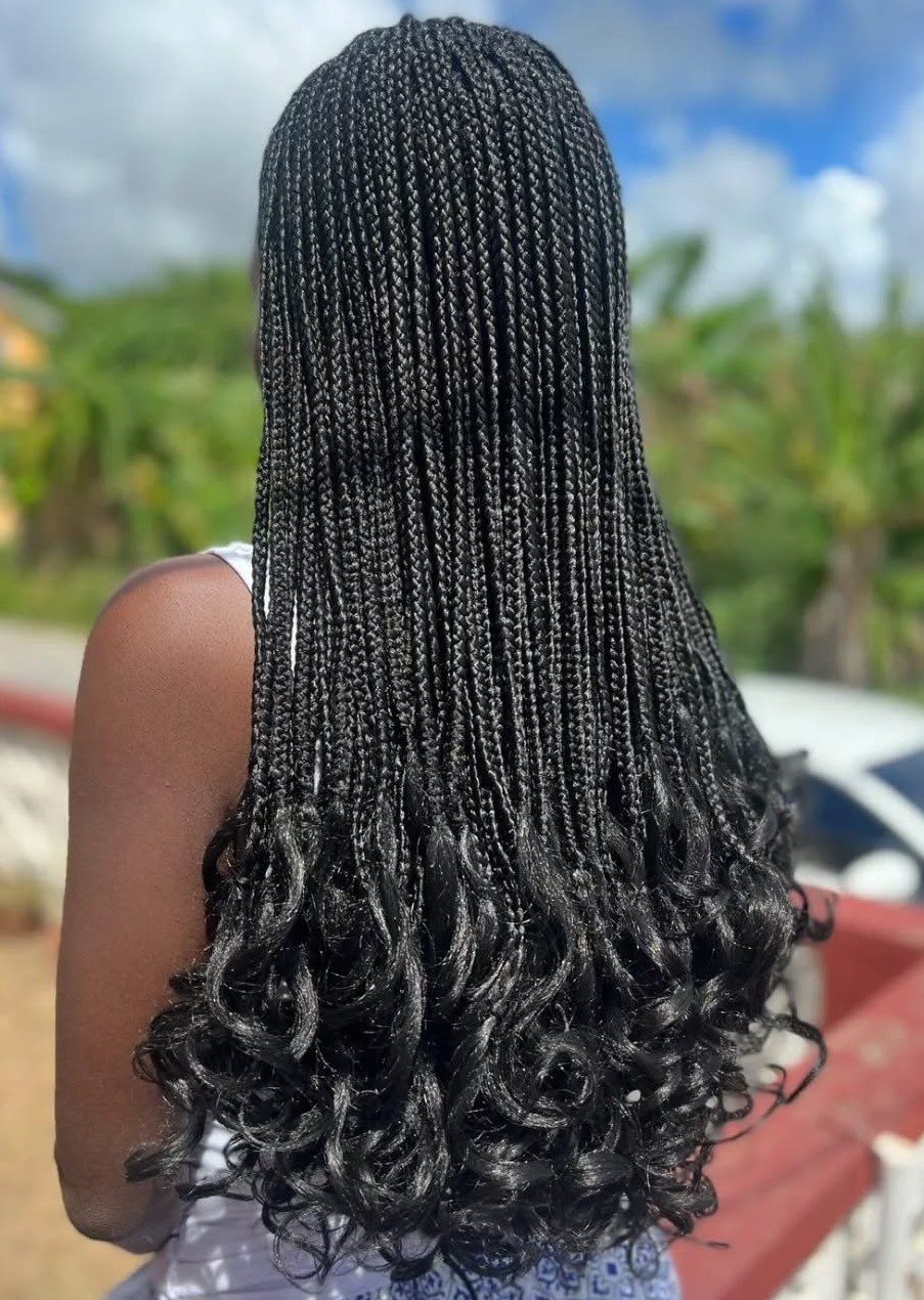 When it comes to tiny braids, you can never go wrong with a classic look: long, sleek, and undeniably chic. These long braids look like your typical straightened hair, except for the fact that you won’t spend any unnecessary time styling it with heat tools or combing through it.