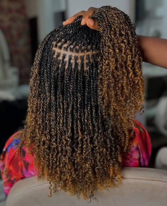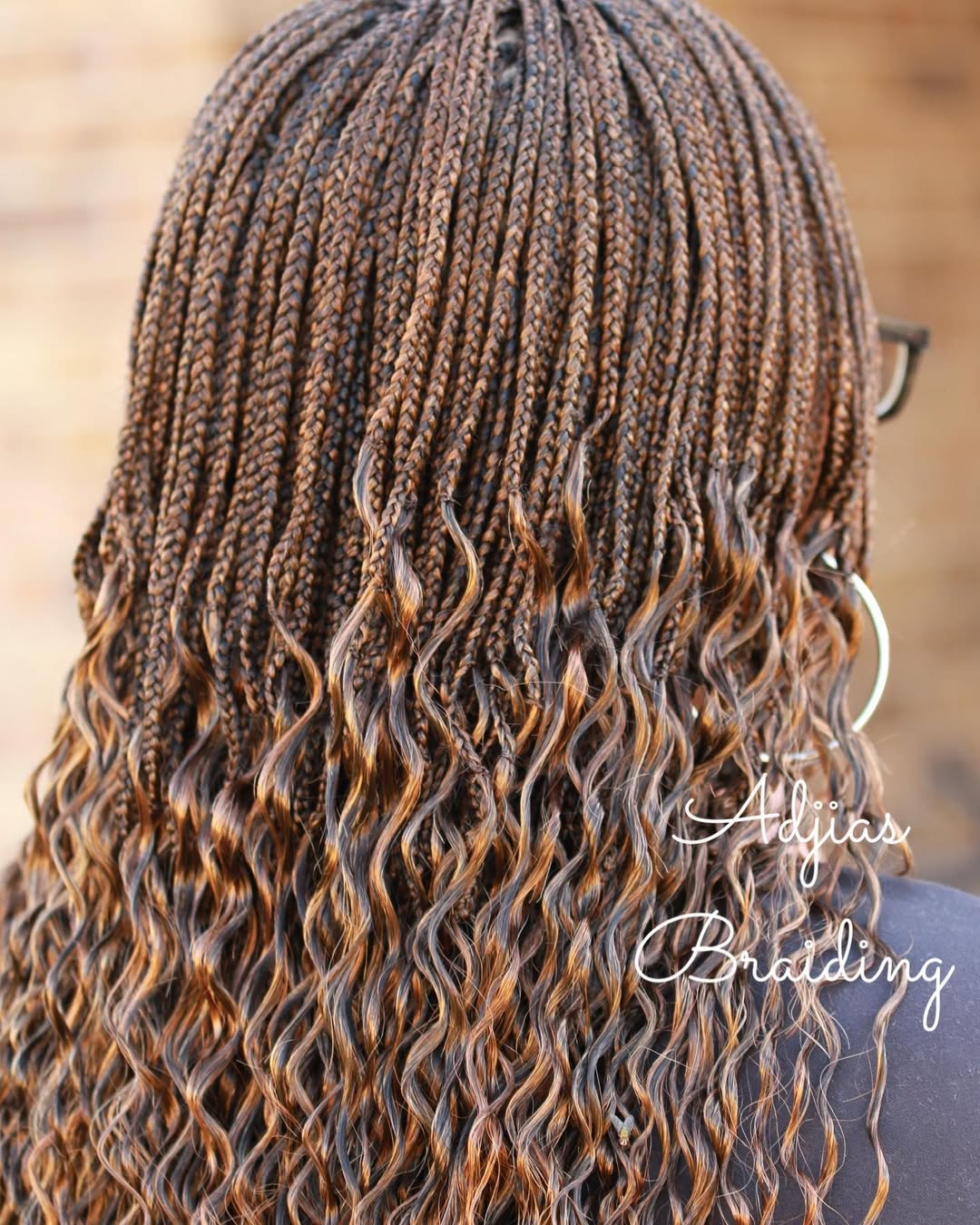 By adding a splash of gold to your micro braids, you can create an almost translucent-like effect. What’s more, if you concentrate the metallic color toward the bottom of your hair, you achieve a cool ombre or balayage look.