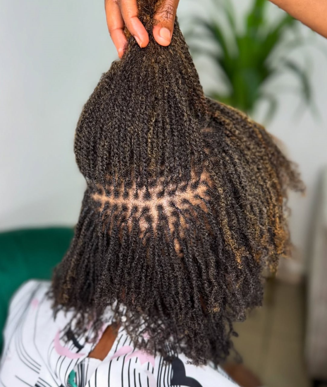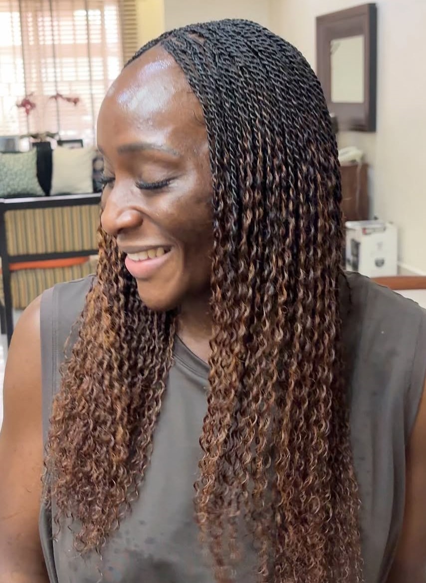 These teeny twists are just like hair, only polished, manageable, and of the desired length and color. Styling them is a breeze while your natural hair is not exposed to heat and chemicals. Throw your extra-long twists in a high pony and enjoy them moving gently across your back when you are walking, or throw them over your shoulders for a dramatic effect.