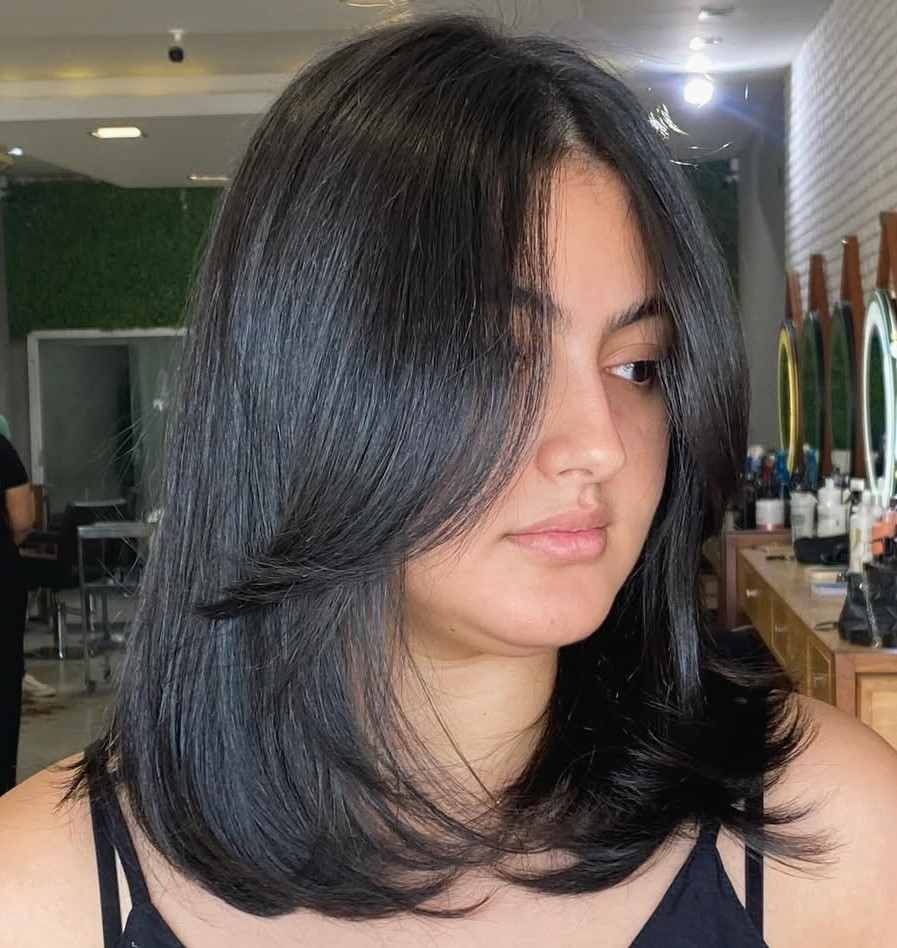 This hairstyle is elegant in its simplicity! Classy yet casual, it suits all face shapes and hair textures, making it a perfect catch for anyone. Ask your hair stylist for subtle waves and a gentle fringe that grazes the eyebrows to add a touch of charm to your style.