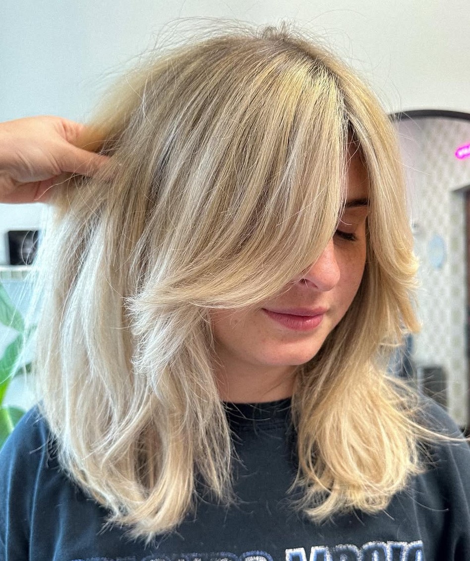 There’s nothing better than beautiful, flowy locks, and a shoulder-length bob with feminine bangs can be exactly what’s needed! Also, consider front highlights will perfectly frame your face.