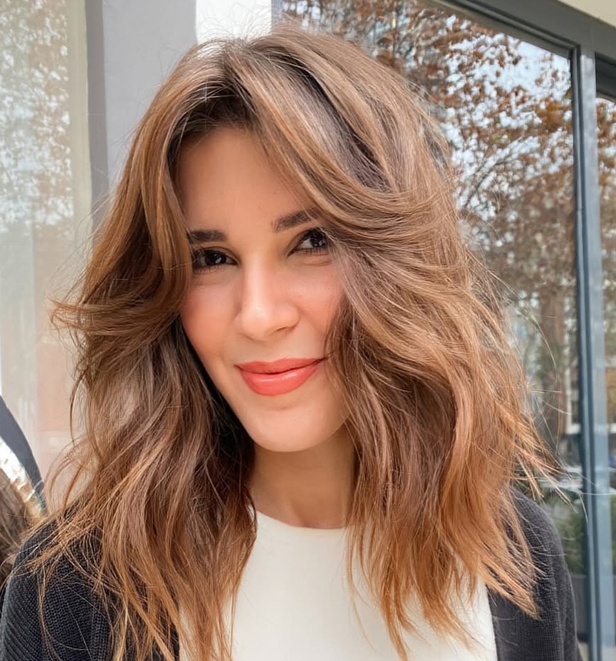 This hairstyle is elegant in its simplicity! Classy yet casual, it suits all face shapes and hair textures, making it a perfect catch for anyone. Ask your hair stylist for subtle waves and a gentle fringe that grazes the eyebrows to add a touch of charm to your style.