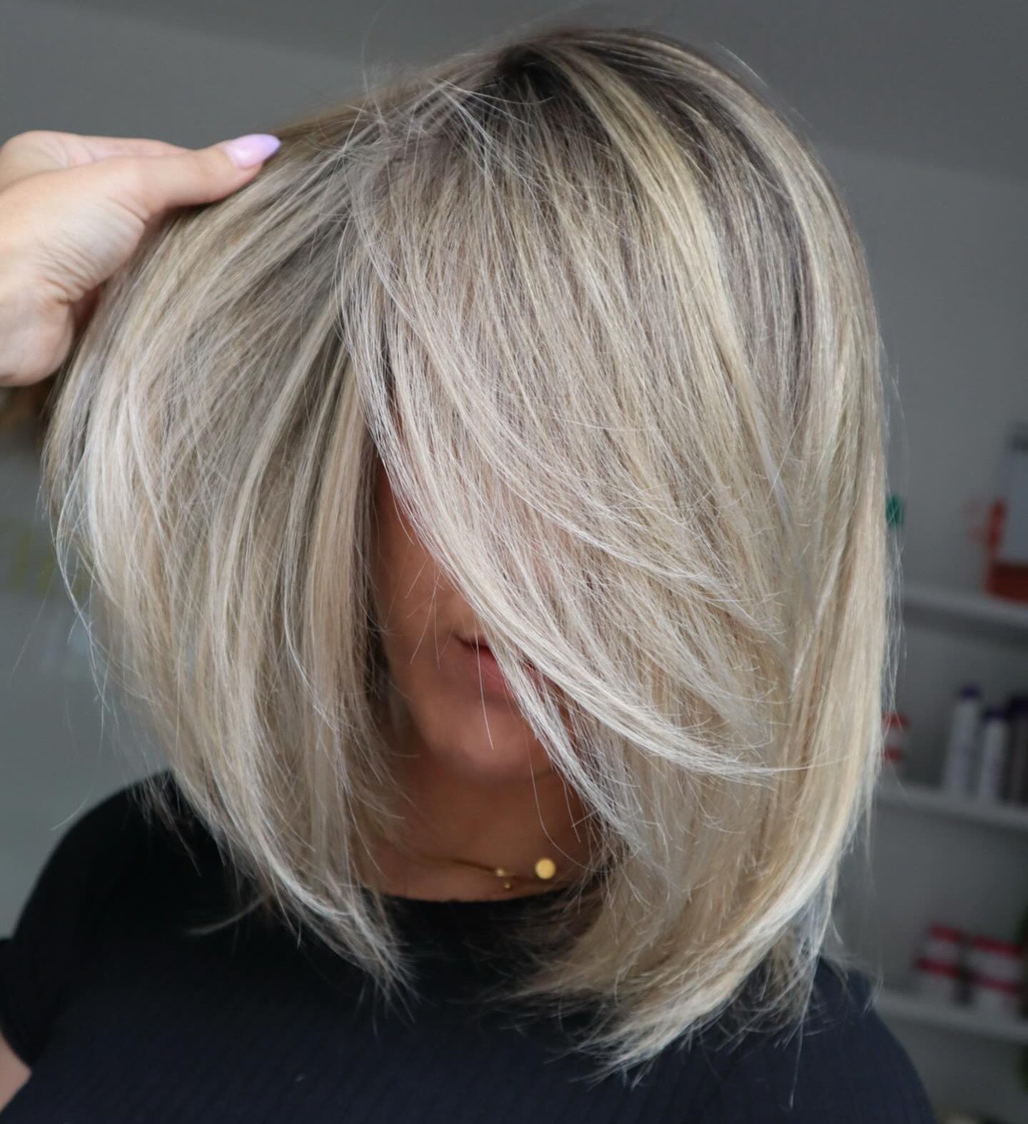 Begin a new season with a fresh outstanding haircut! Opt for an elongated bob with face-framing layers to emphasize the gorgeous blonde shade of your hair, and leave dark roots to make this cut more low-maintenance.