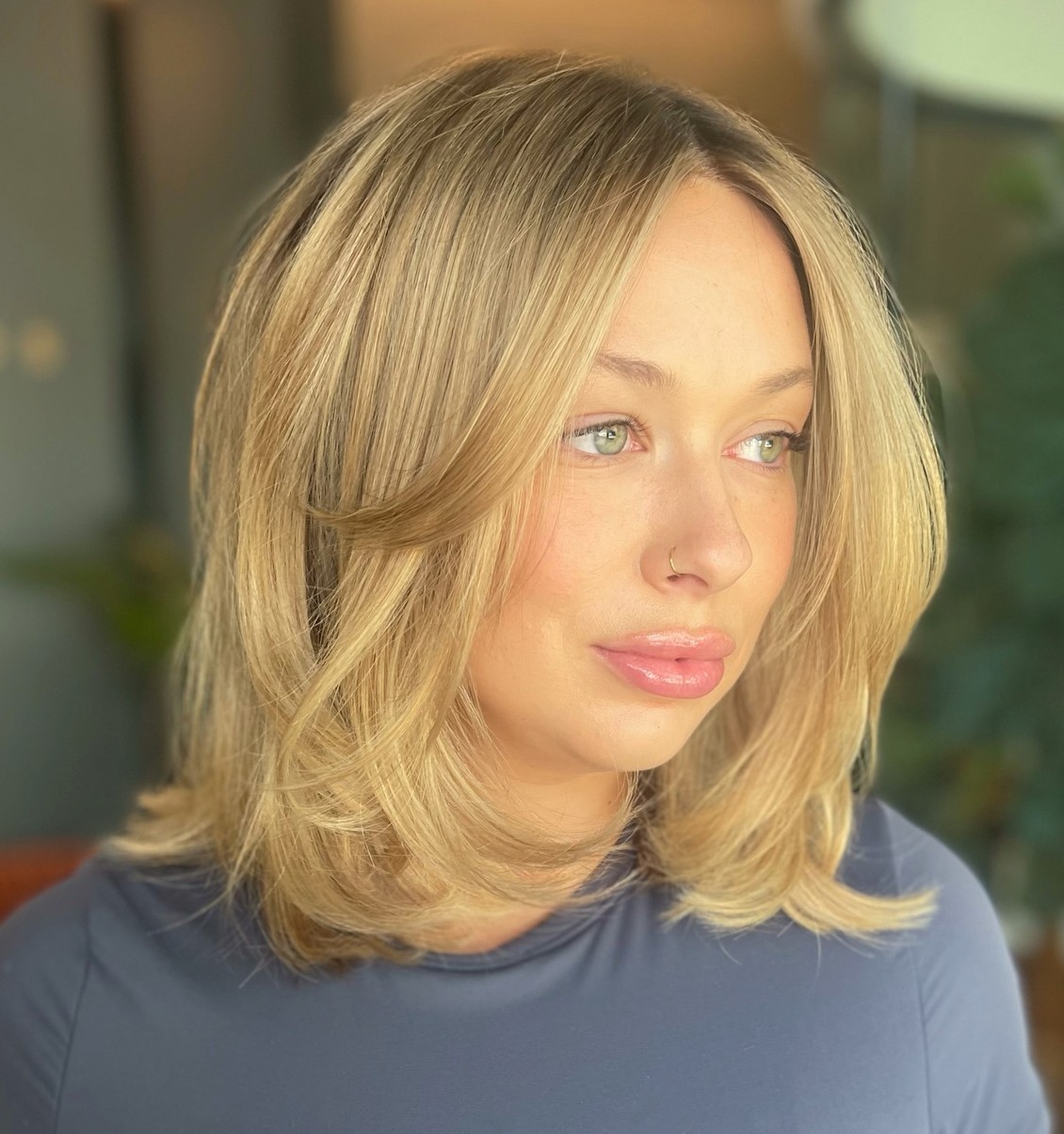 Begin a new season with a fresh outstanding haircut! Opt for an elongated bob with face-framing layers to emphasize the gorgeous blonde shade of your hair, and leave dark roots to make this cut more low-maintenance.