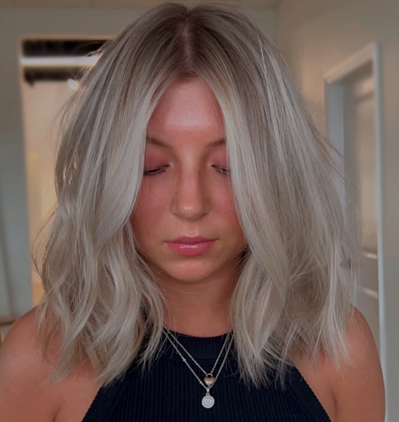 If you can’t decide on a hairstyle, this choppy blonde bob with balayage is a win-win option for you to stand out. With notes of both warm and cool tones, it’ll suit those with a neutral skin tone. The dark roots and the bright blonde pieces strategically placed closer and further to the root means no harsh lines when your natural color grows in.