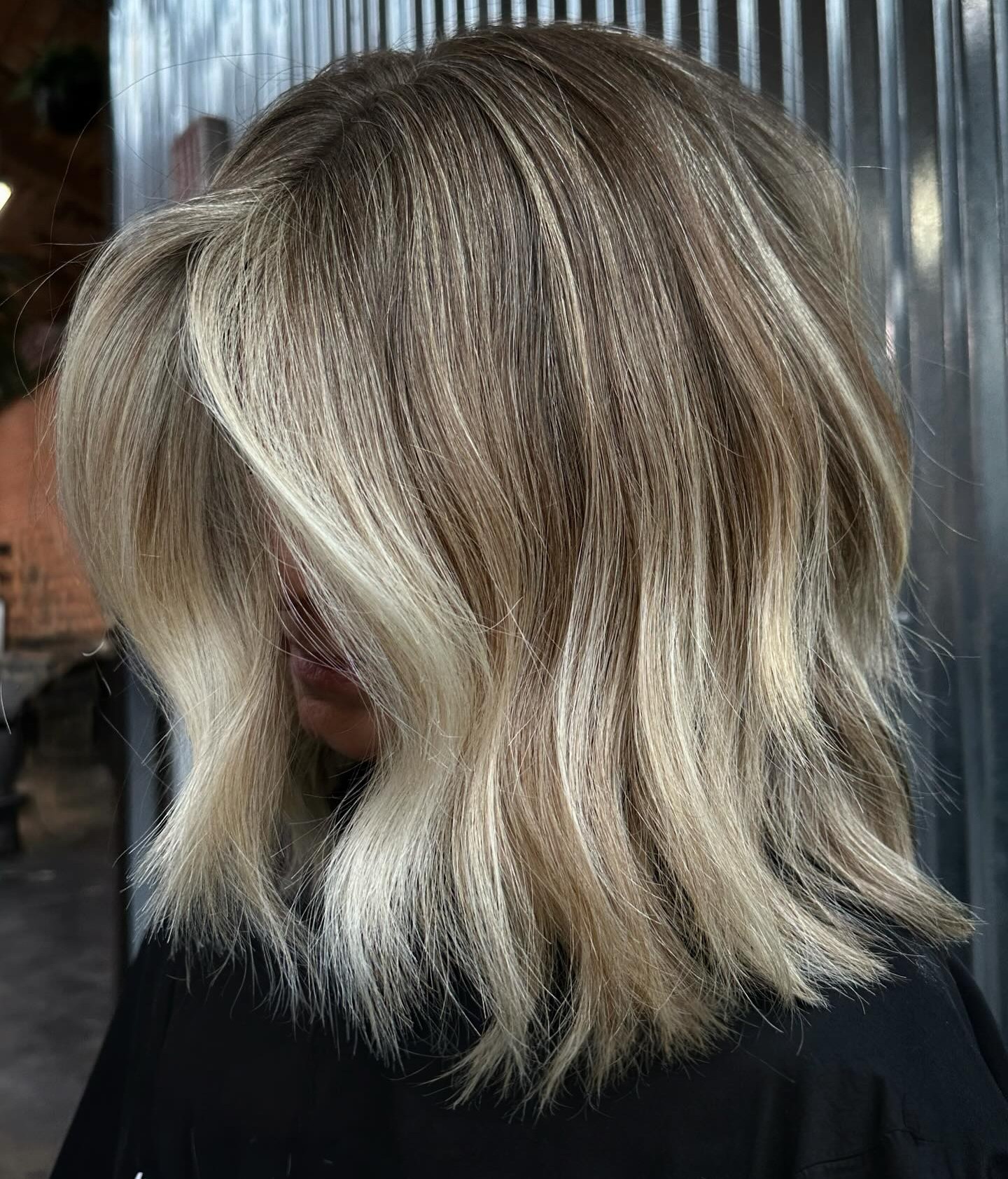 A lived-in blonde balayage is perfect for showing off the soft layers and shine of your textured lob. To style this feminine look, use a flat iron and shine serum, and blow-dry with a round brush for added volume.