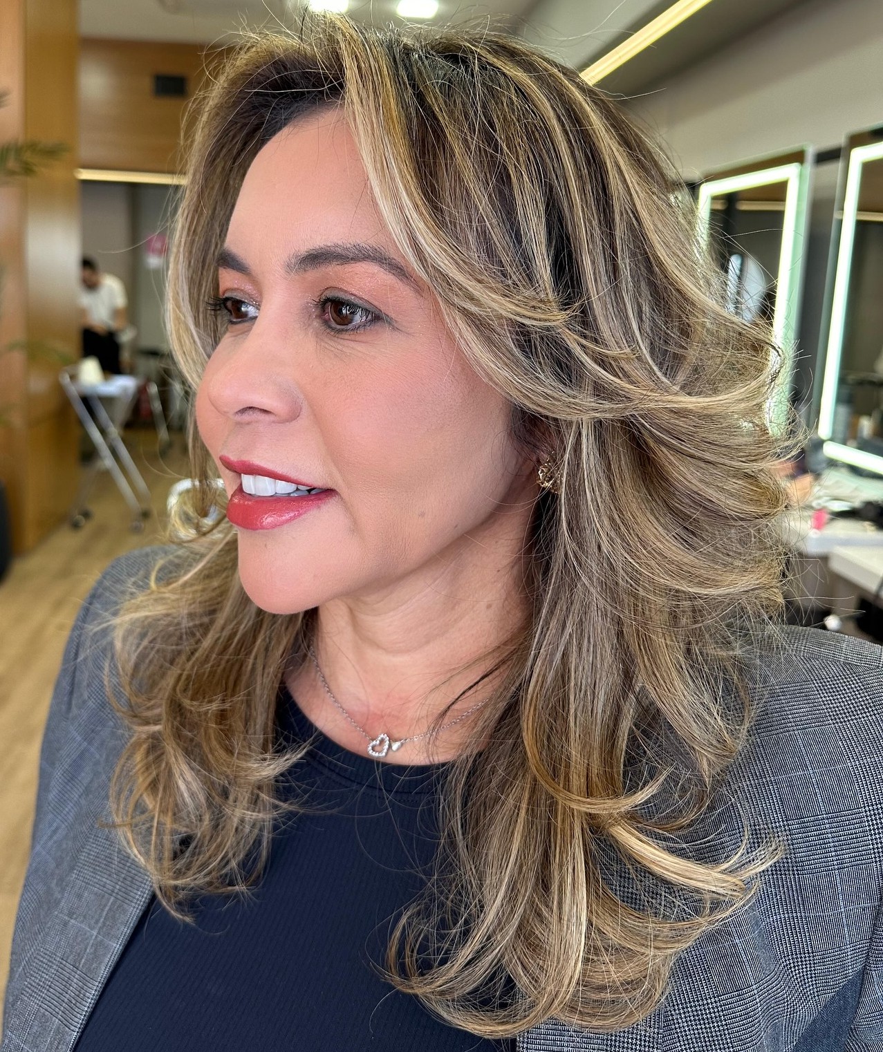 If you are looking for the best way to give your mature hair some volume without making a dramatic change, butterfly layers are your best bet. Lightweight, bouncy, and voluminous is all you need for a youthful look.