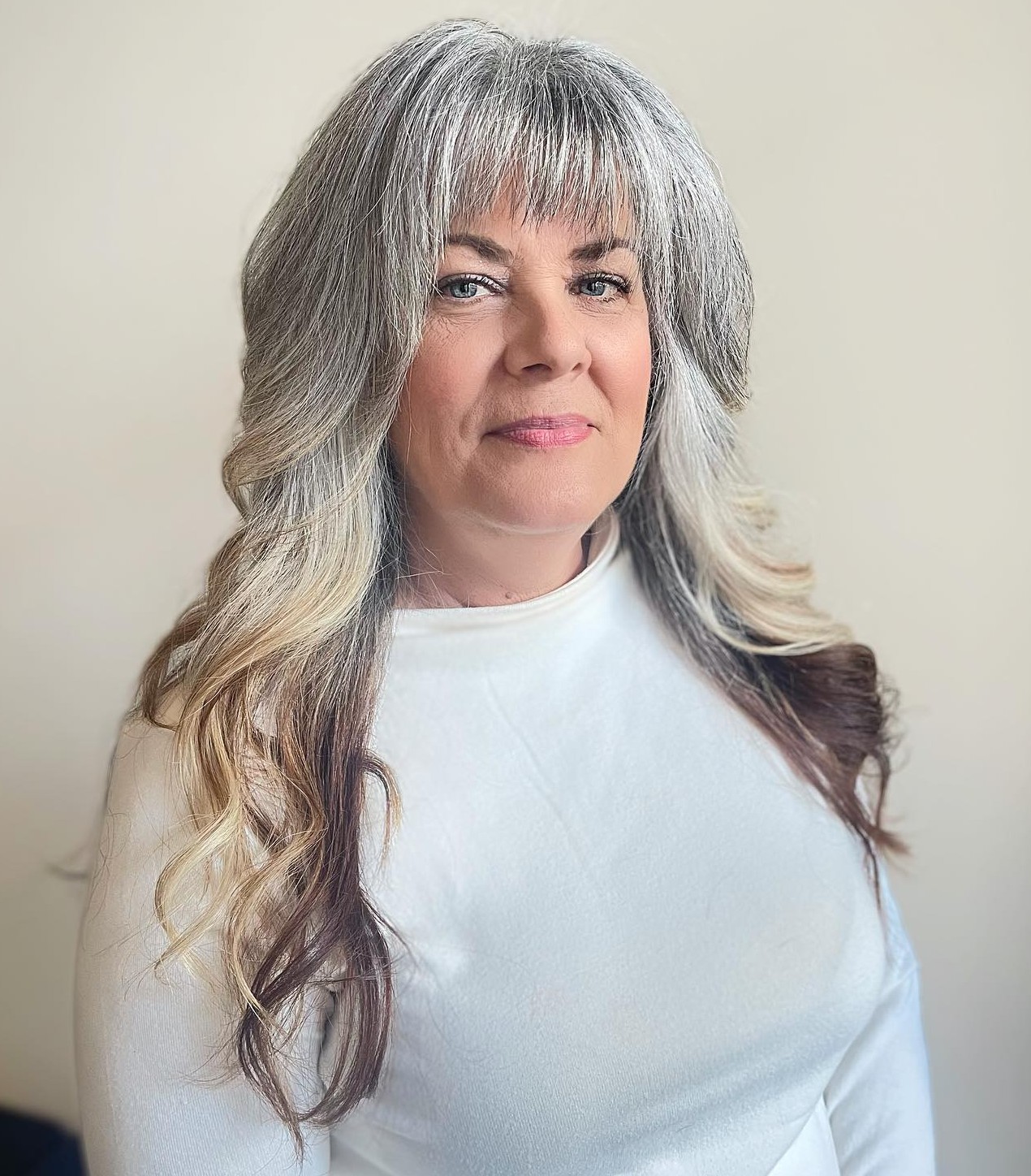Although the ttransition from dyed hair to your natural gray can be long and expensive, this is so worth the effort! Also, the investment will pay back as a major saving on all the future color appointments that you will skip.