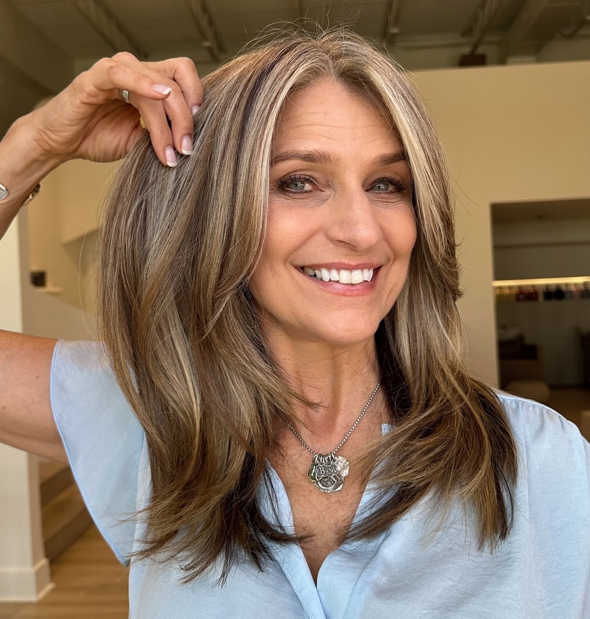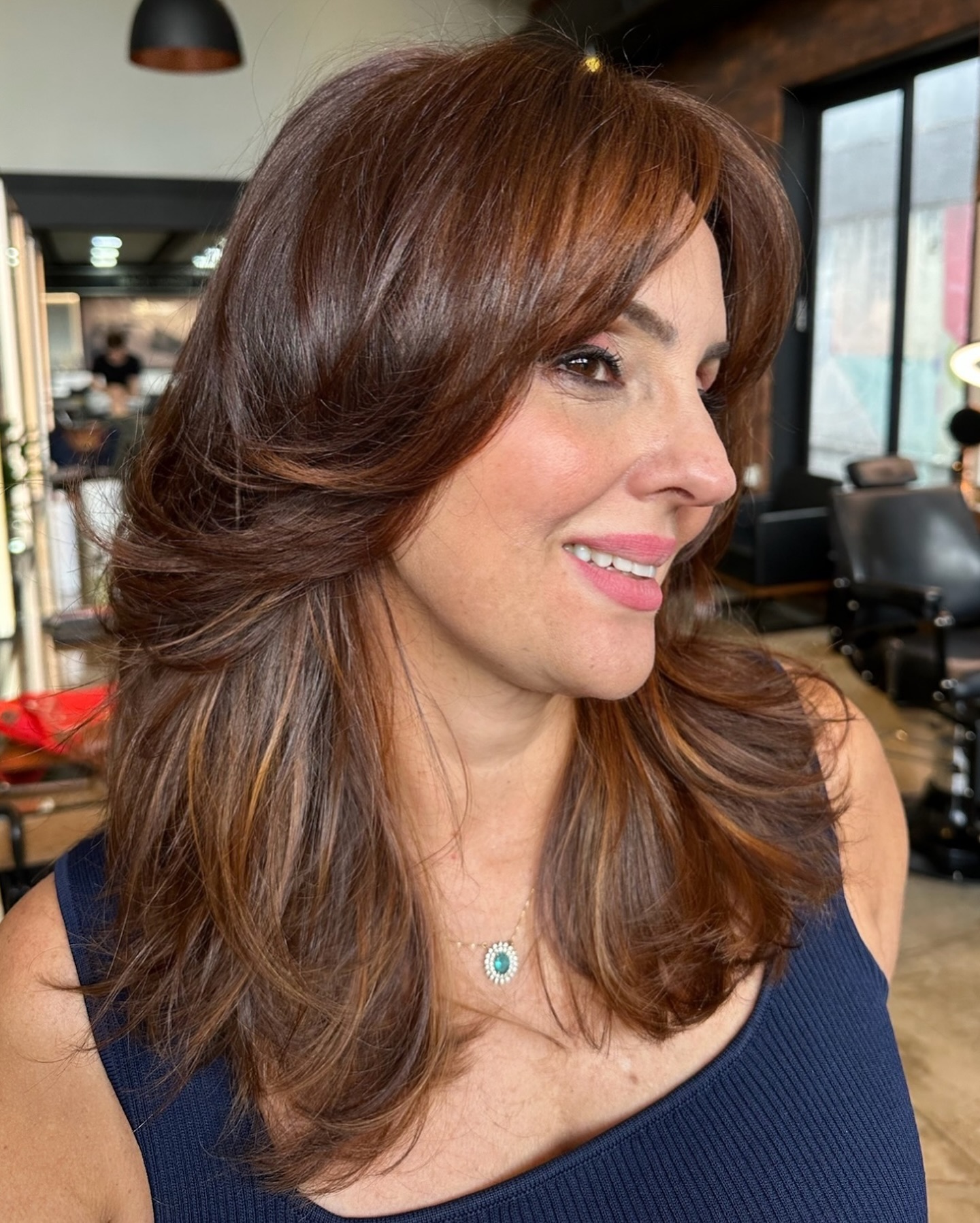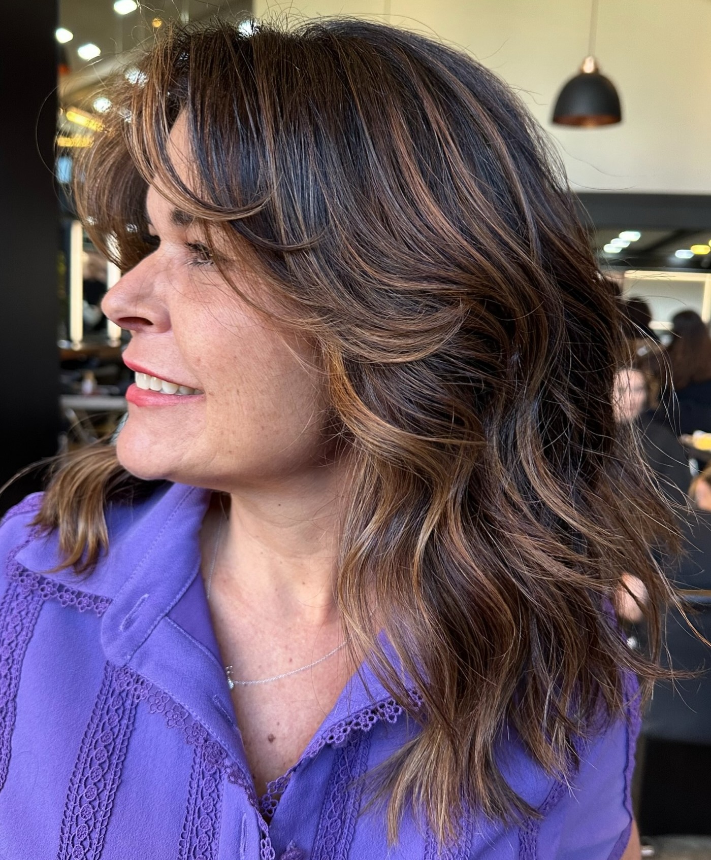 If you are looking for the best way to give your mature hair some volume without making a dramatic change, butterfly layers are your best bet. Lightweight, bouncy, and voluminous is all you need for a youthful look.