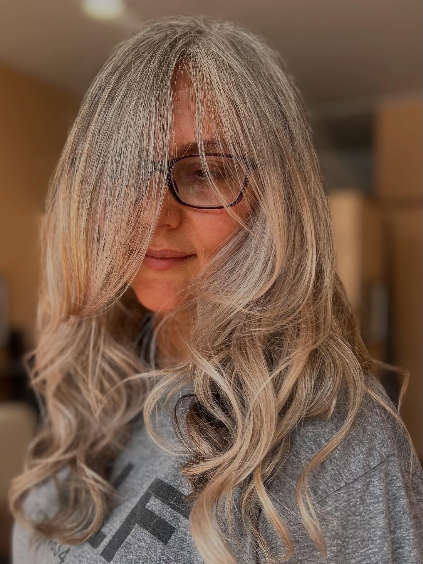 Although the ttransition from dyed hair to your natural gray can be long and expensive, this is so worth the effort! Also, the investment will pay back as a major saving on all the future color appointments that you will skip.