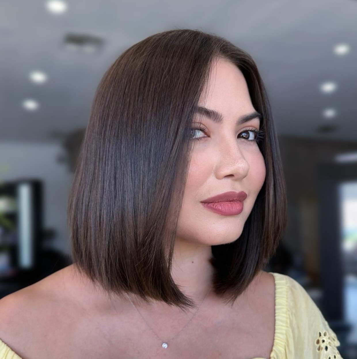 An effortless textured bob cut is one of the best choices for straight hair, as you can easily achieve a swoon-worthy look without using any styling tools. If you want to spice it up with a blonde hue, make the style undemanding by keeping your dark natural roots.