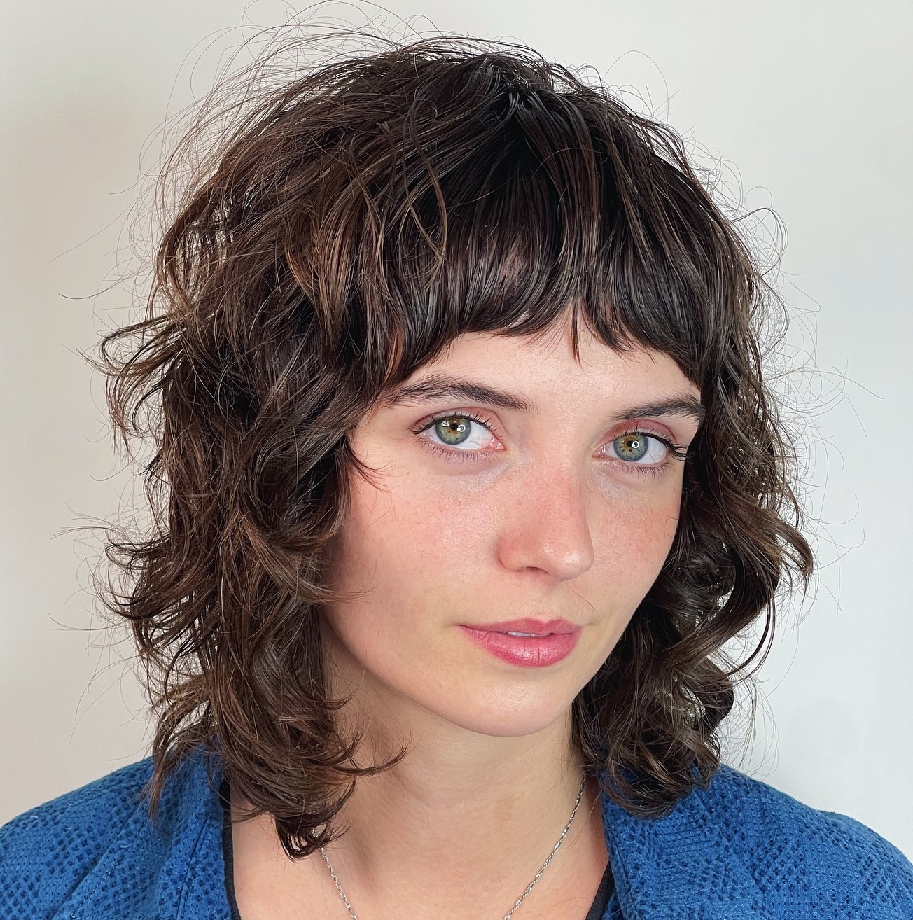 Medium-length wispy hair got really amazing when cut into a mullet shag, prompted into waves, and dyed chocolate brown. Textured fringe is just the icing on the cake that has totally changed the look. Take note that all of these things don’t compromise on maintenance.