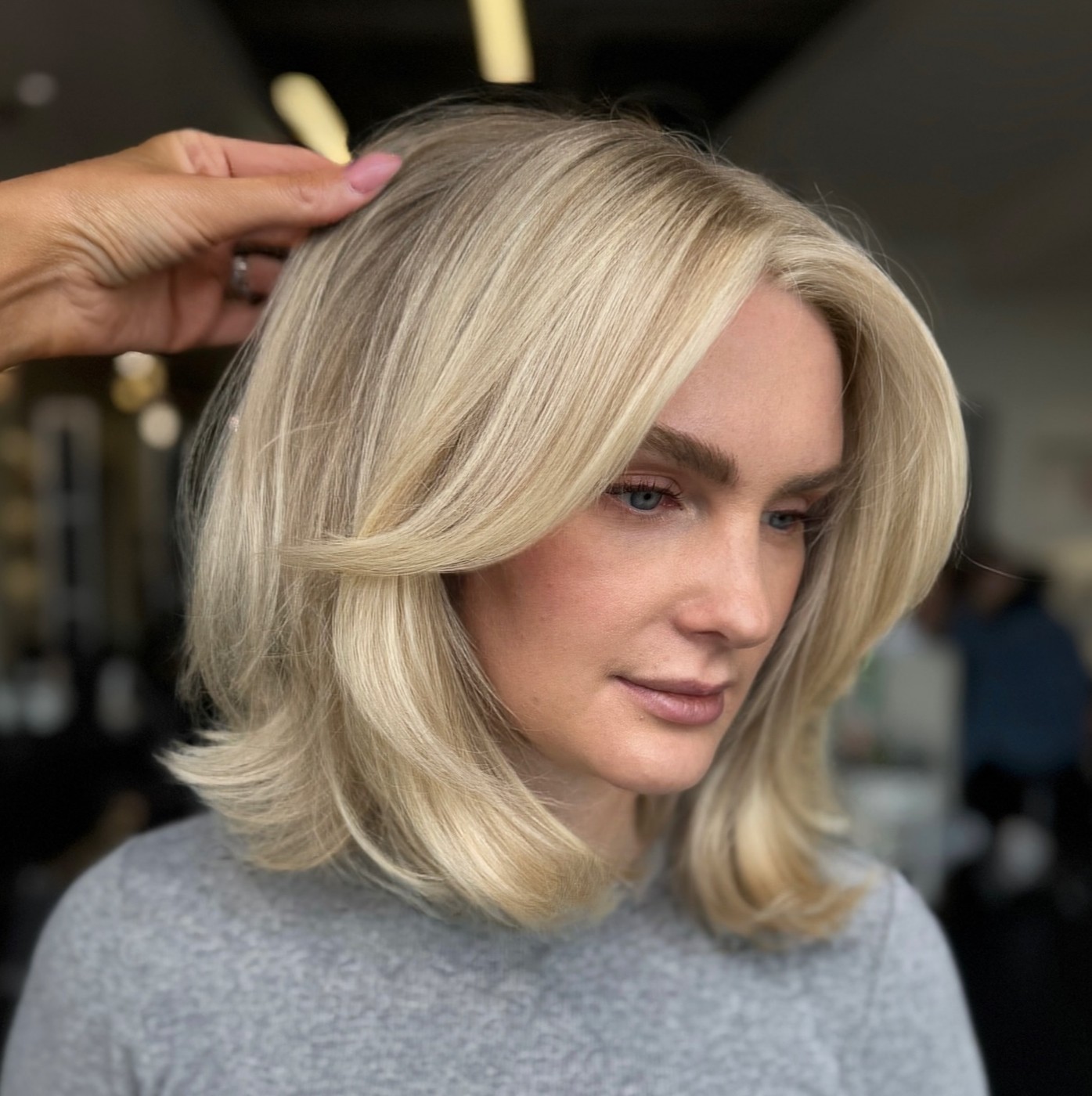 An effortless textured bob cut is one of the best choices for straight hair, as you can easily achieve a swoon-worthy look without using any styling tools. If you want to spice it up with a blonde hue, make the style undemanding by keeping your dark natural roots.