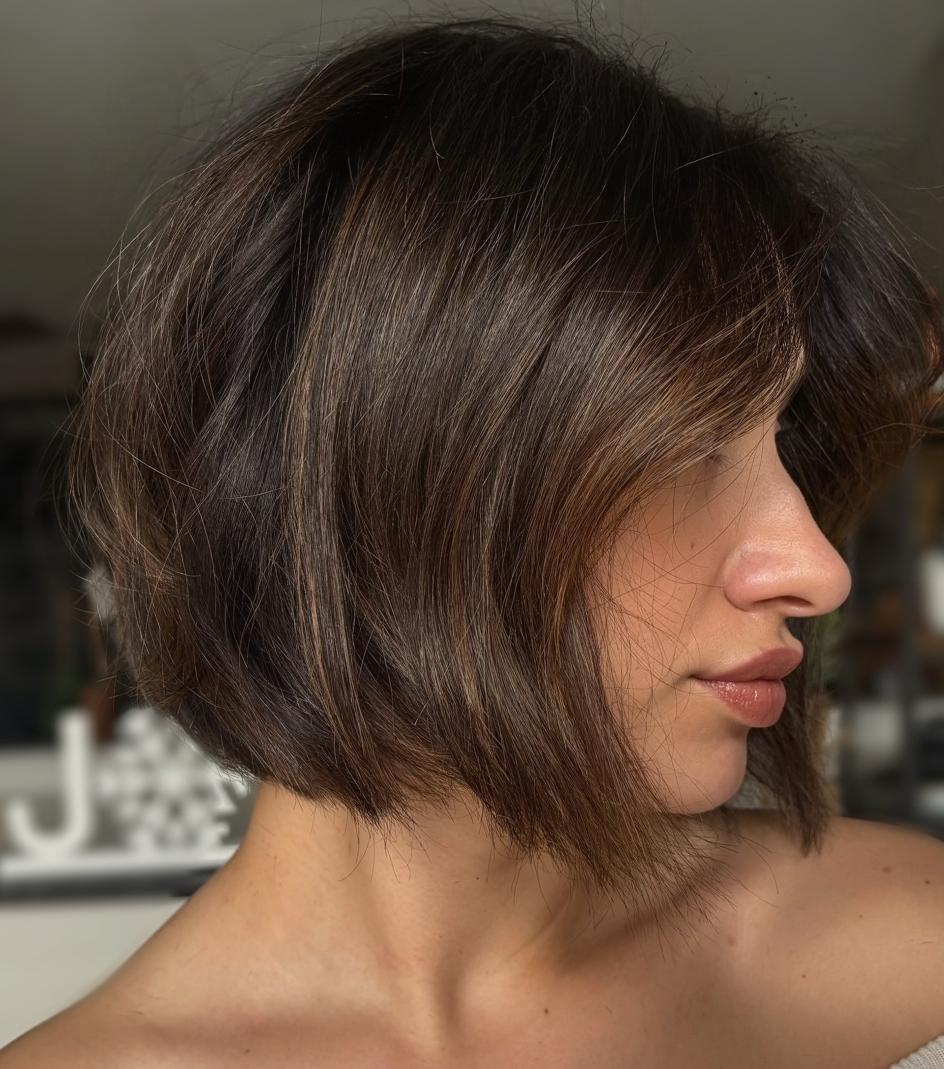 This charming French bob is undeniably stylish. You should give it a go if you have thick, wavy hair. Your natural texture plus baby bangs will help you create an effortless style with a dash of Parisian charm.