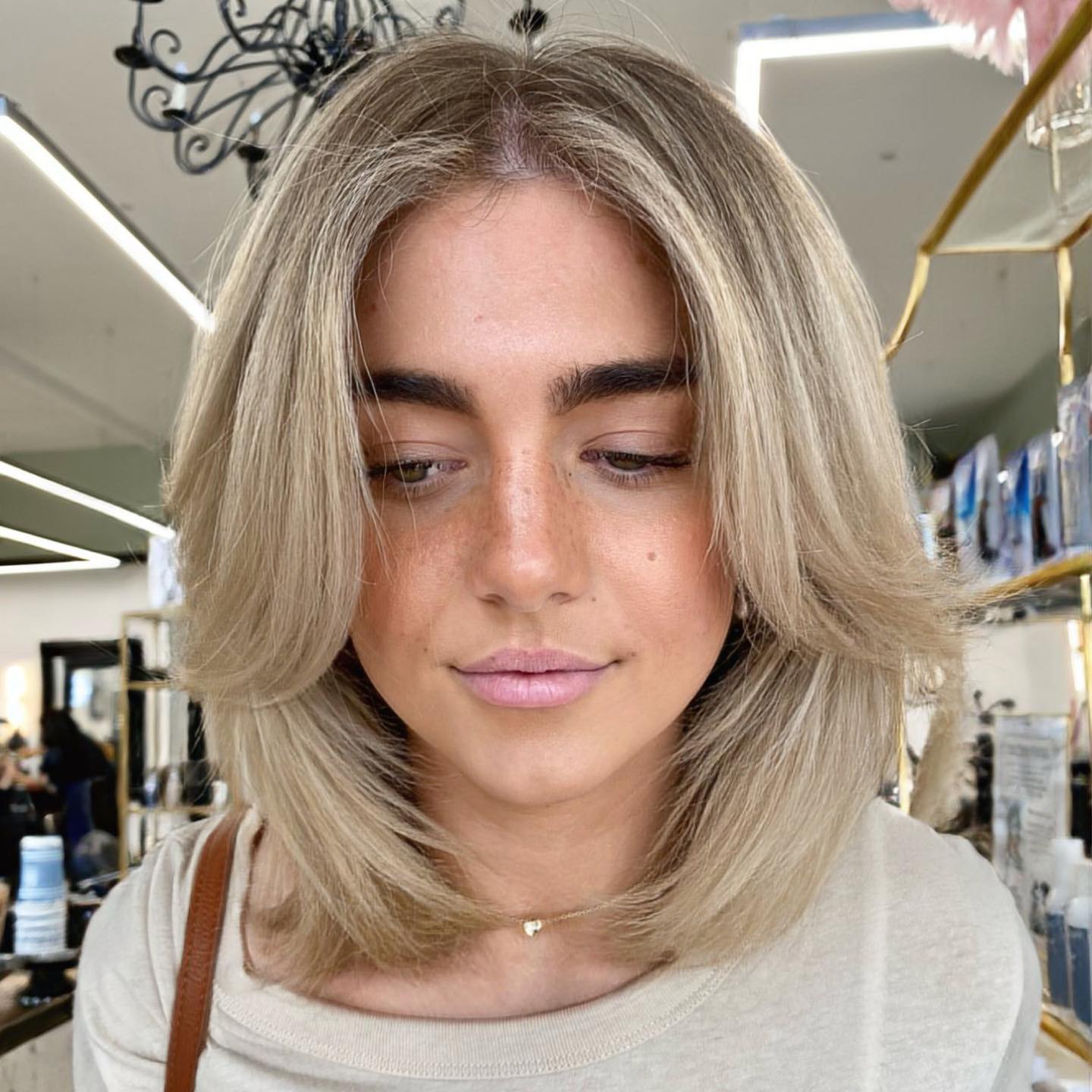 An effortless textured bob cut is one of the best choices for straight hair, as you can easily achieve a swoon-worthy look without using any styling tools. If you want to spice it up with a blonde hue, make the style undemanding by keeping your dark natural roots.