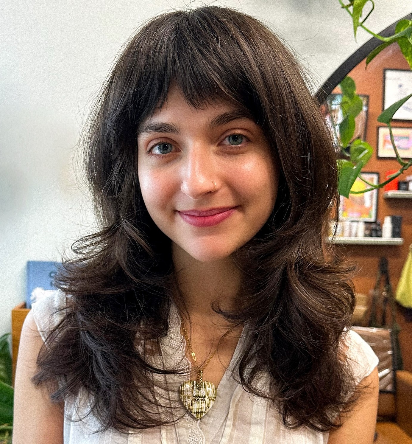 A full, textured mane might come with its own challenges, but it’s also a beautiful asset. With a shaggy haircut, you can create a carefree, undone look with no effort by styling your long layers into loose waves.