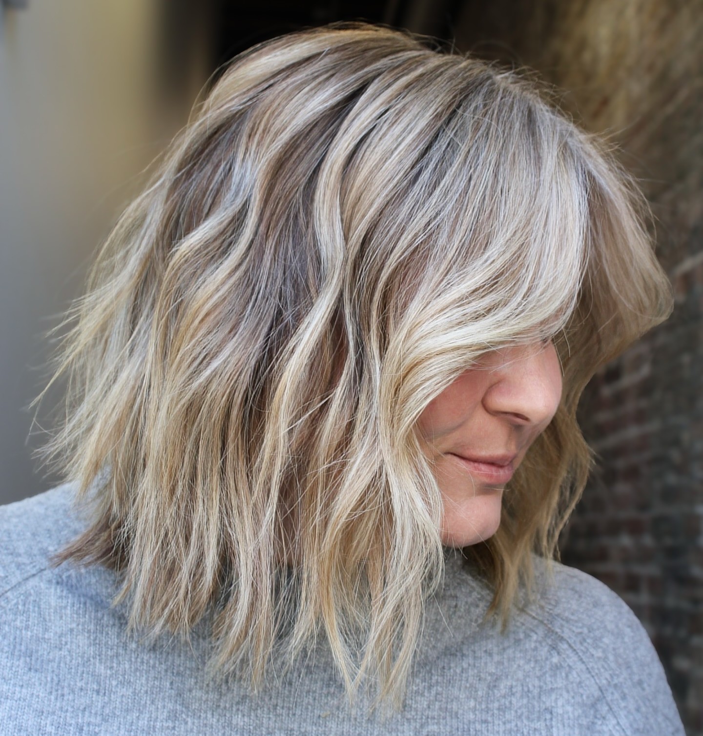 If you want to have the best of both worlds – get fuss-free hair without compromising length – here is a solution. You’ll look like a million dollars with a layered medium-length cut. Textured face-framing layers coupled with blonde highlights are everything you need to create dazzling volume.