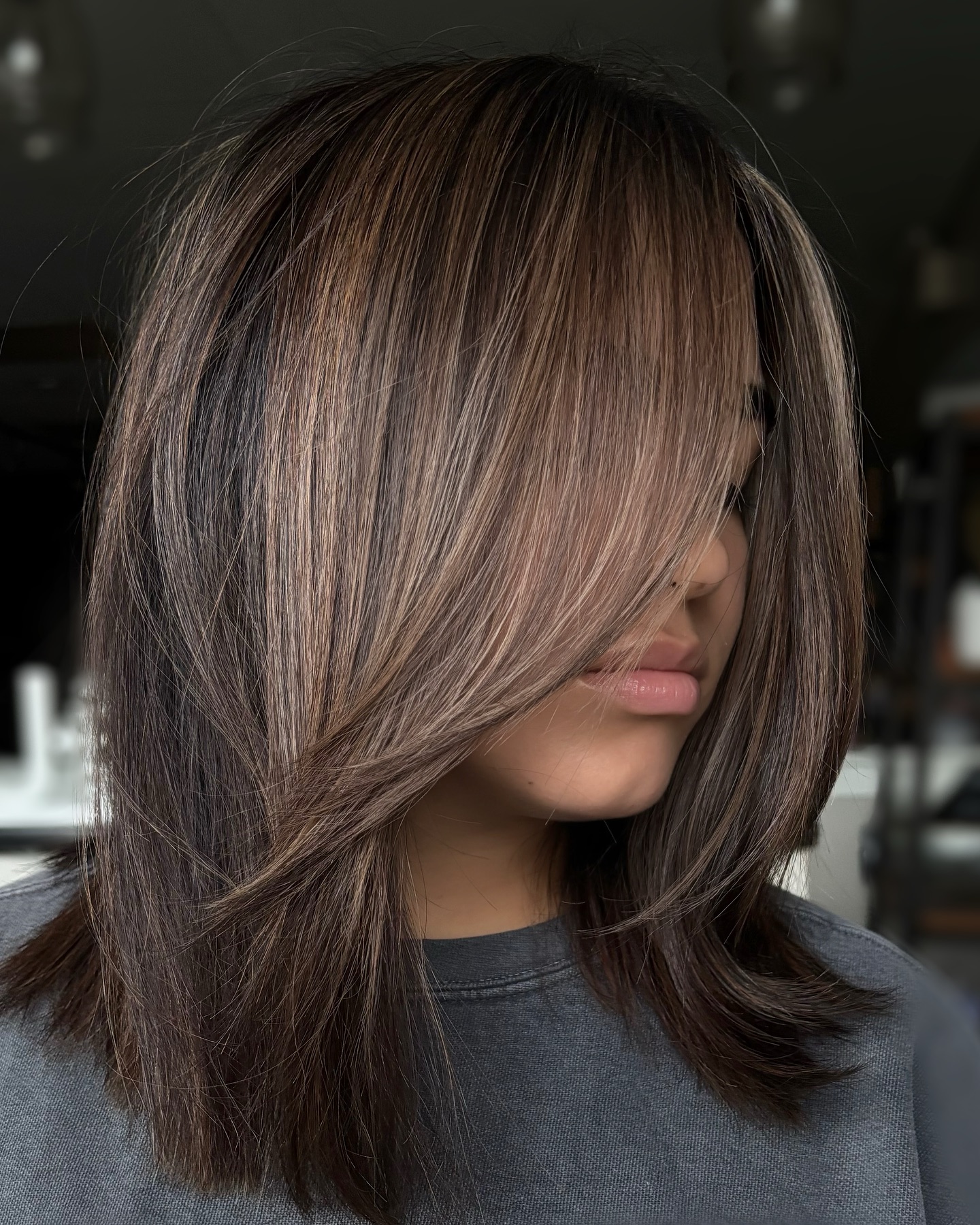 An effortless textured bob cut is one of the best choices for straight hair, as you can easily achieve a swoon-worthy look without using any styling tools. If you want to spice it up with a blonde hue, make the style undemanding by keeping your dark natural roots.