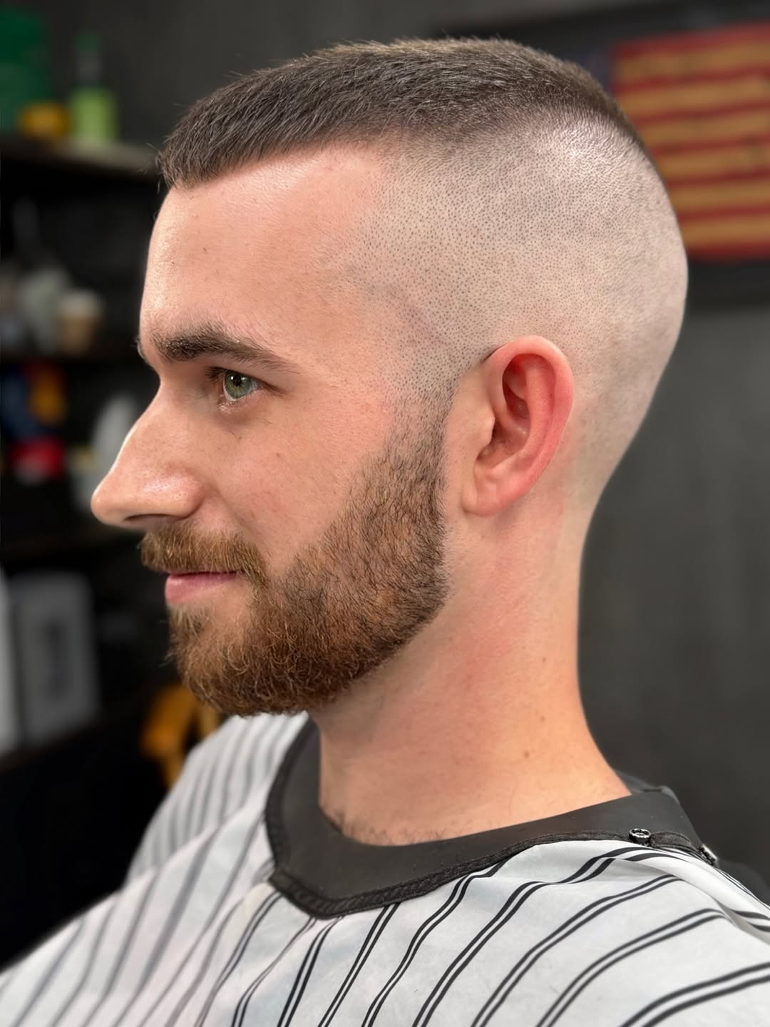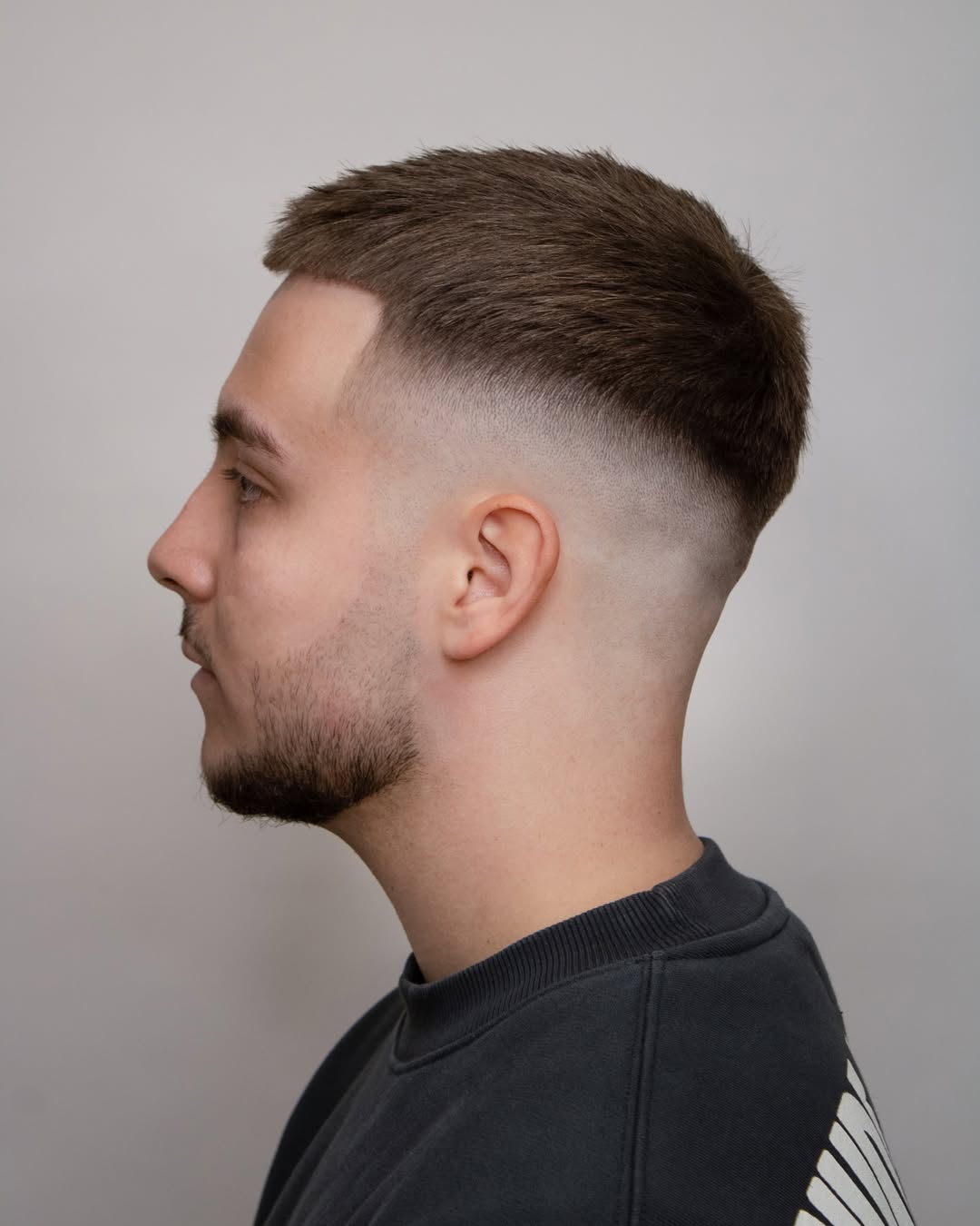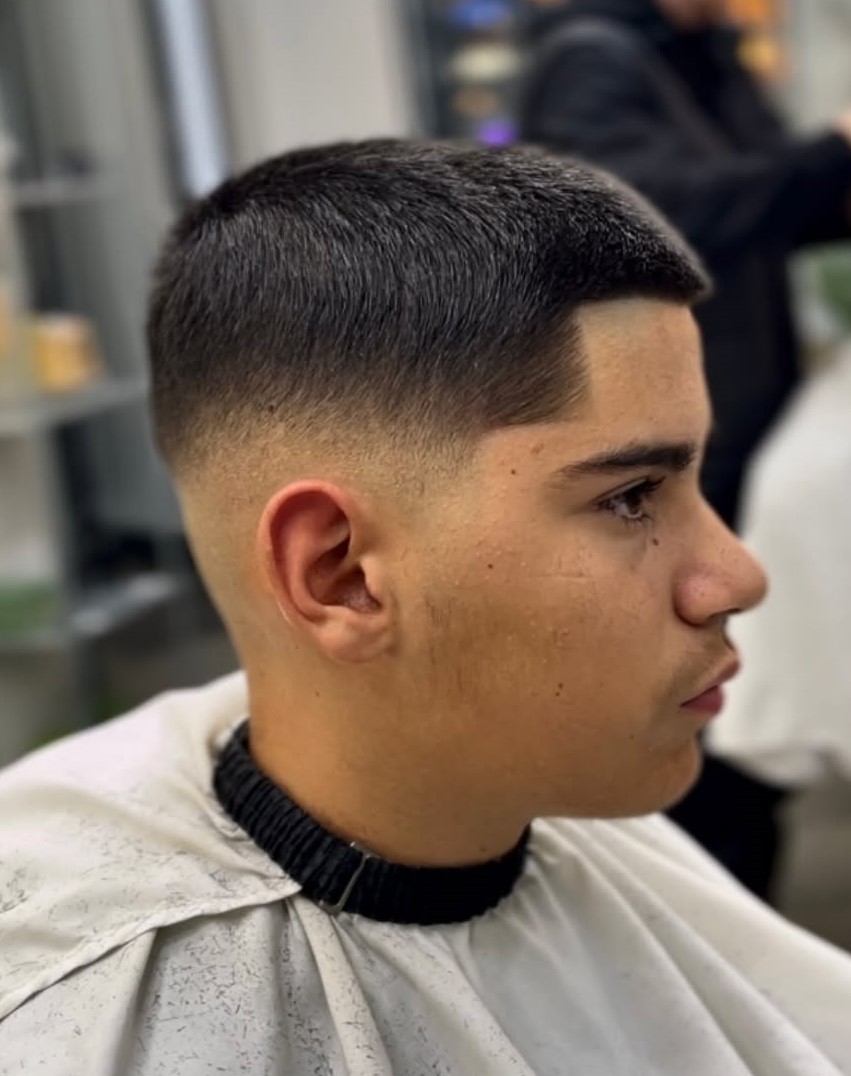 This super short haircut stays true to the style, featuring a minimal length with smoothly faded sides. If you want very short hair with a clean, disciplined edge, this cut is for you.