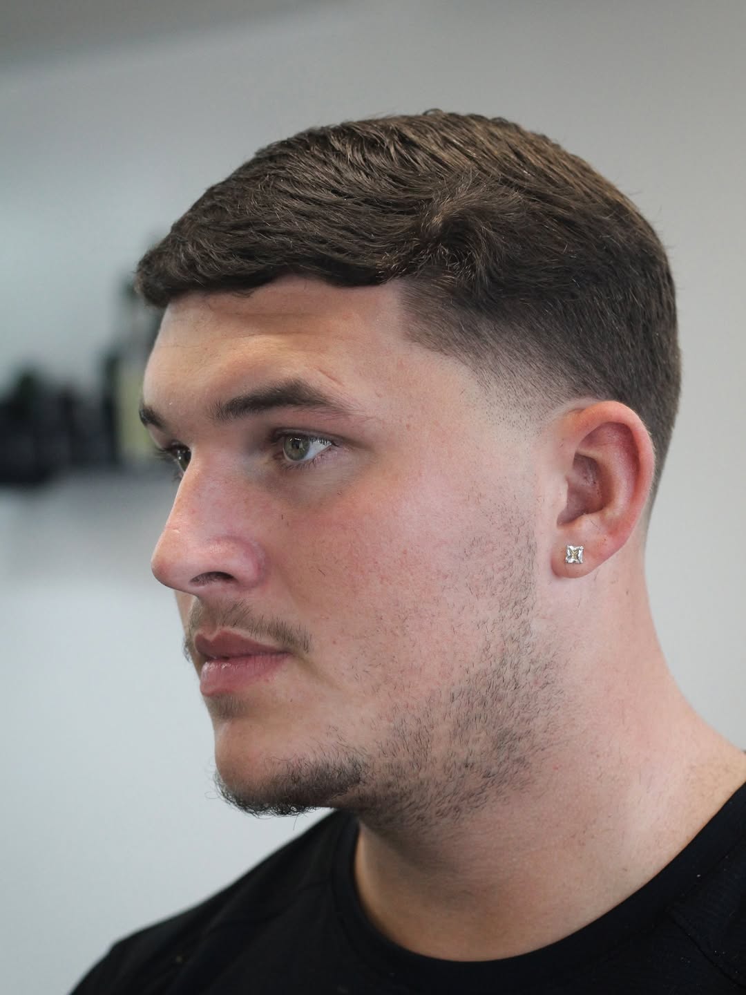 For a cut that allows you to leave a little hair on top, opt for an inch length in the quiff that is gradually tapered and faded towards the temples and nape. Ask your barber for a smooth fade that melts gradually to the skin.