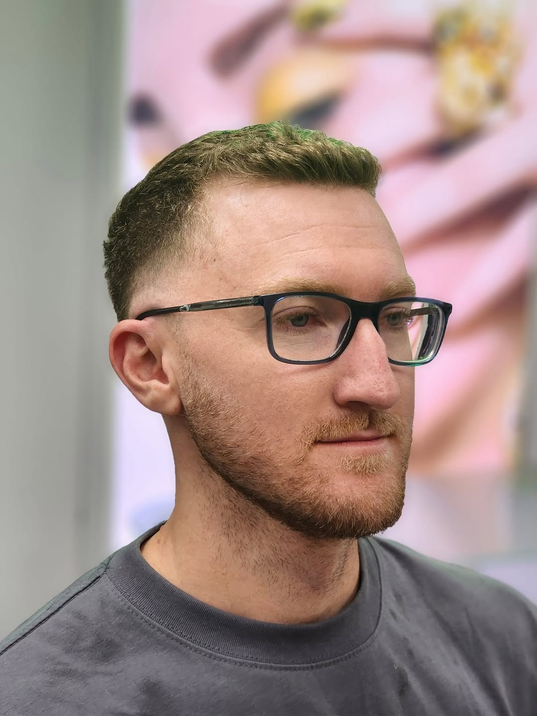 This brush cut has a faded look down and a choppier texture up top. The top is a bit longer, and it can be messy or groomed. This is a very low-maintenance cut that will not bother you – just get it trimmed up on a regular basis.