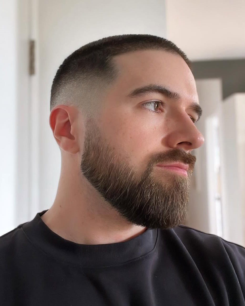 This haircut is a true classic. Being a version of the Ivy League cut, this is a commanding style often associated with leadership. Keep the top a bit longer, and keep the rest, including the beard, the same short length.