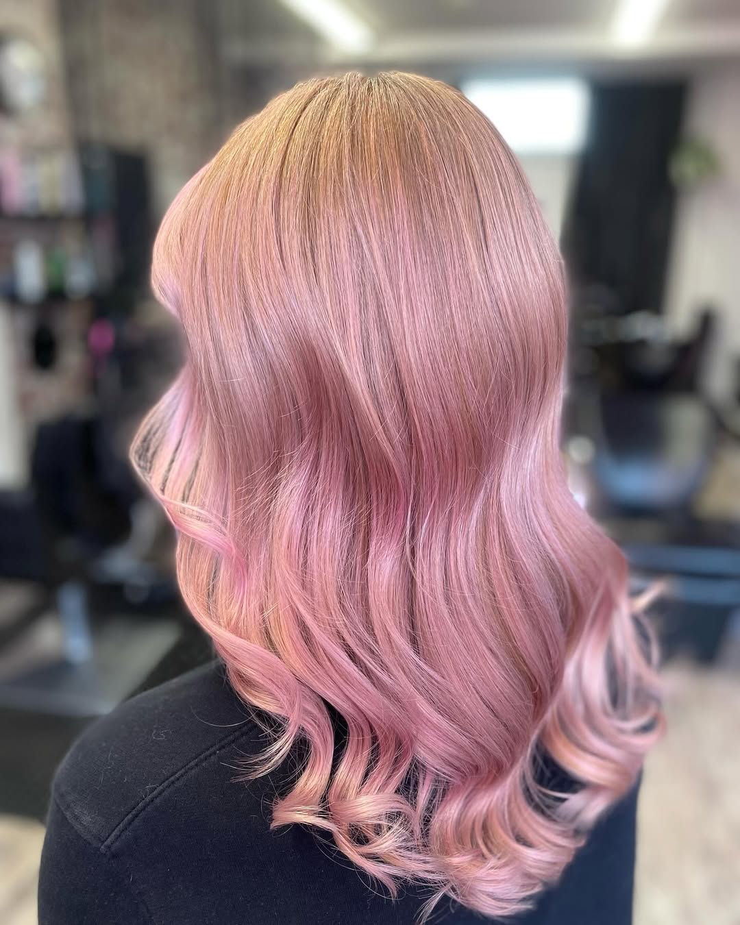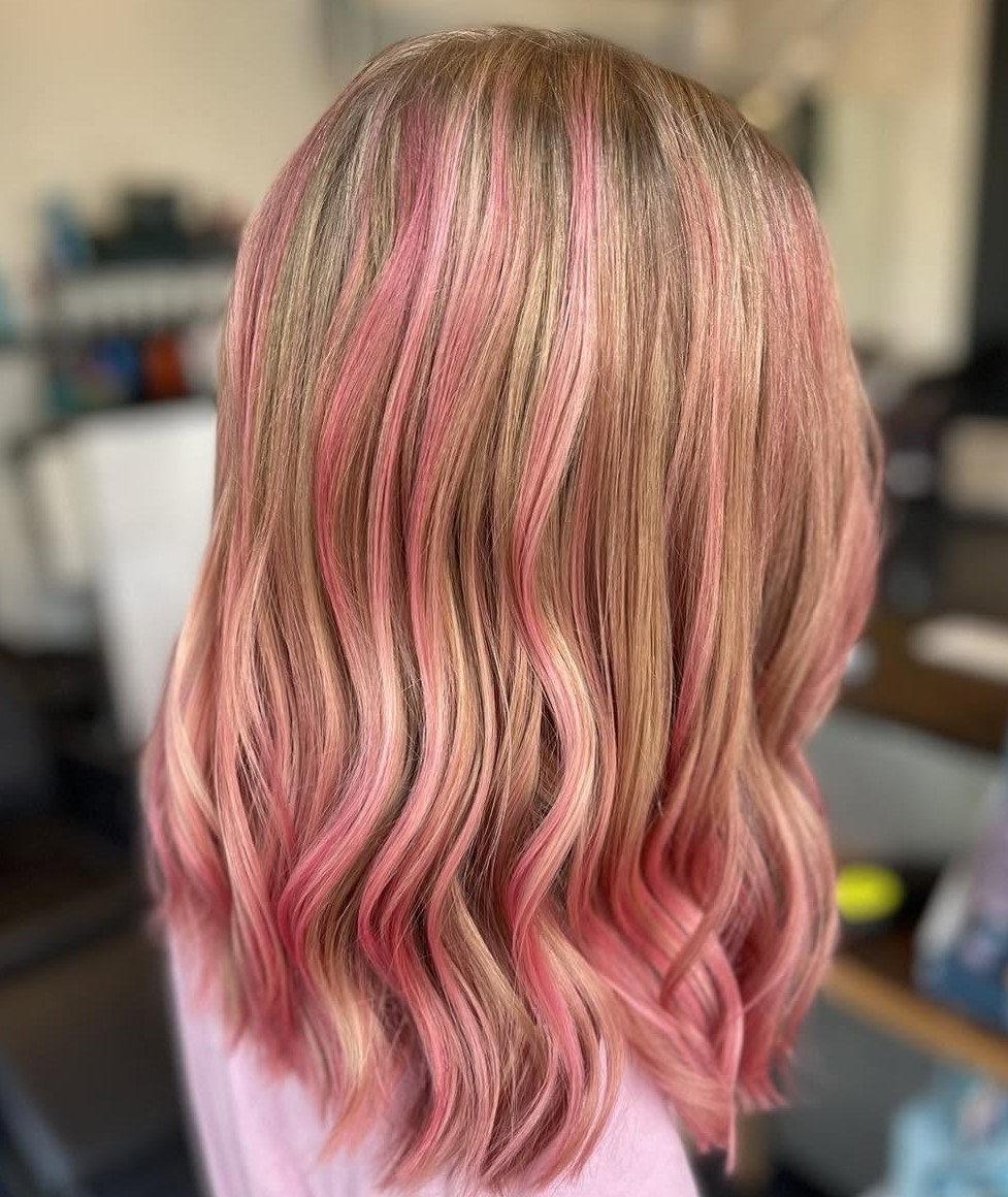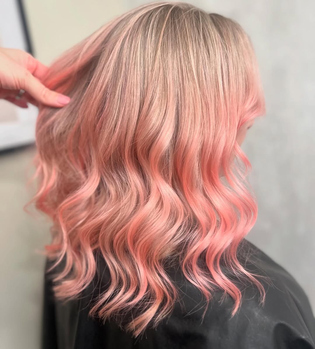 It’s easy to default to cooler, sugary tones like cotton candy or bubble gum. But don’t overlook the warmer side of the spectrum – coral, salmon, and other sun-kissed shades bring their own charm and depth to the look. These warm hues are incredibly flattering against golden blondes and lighten up warm browns.