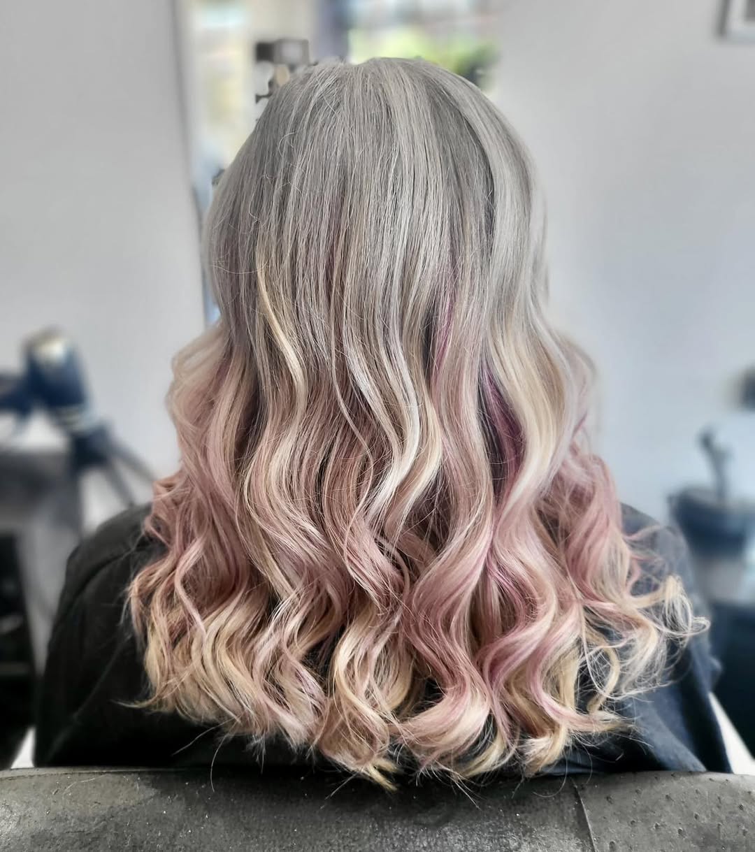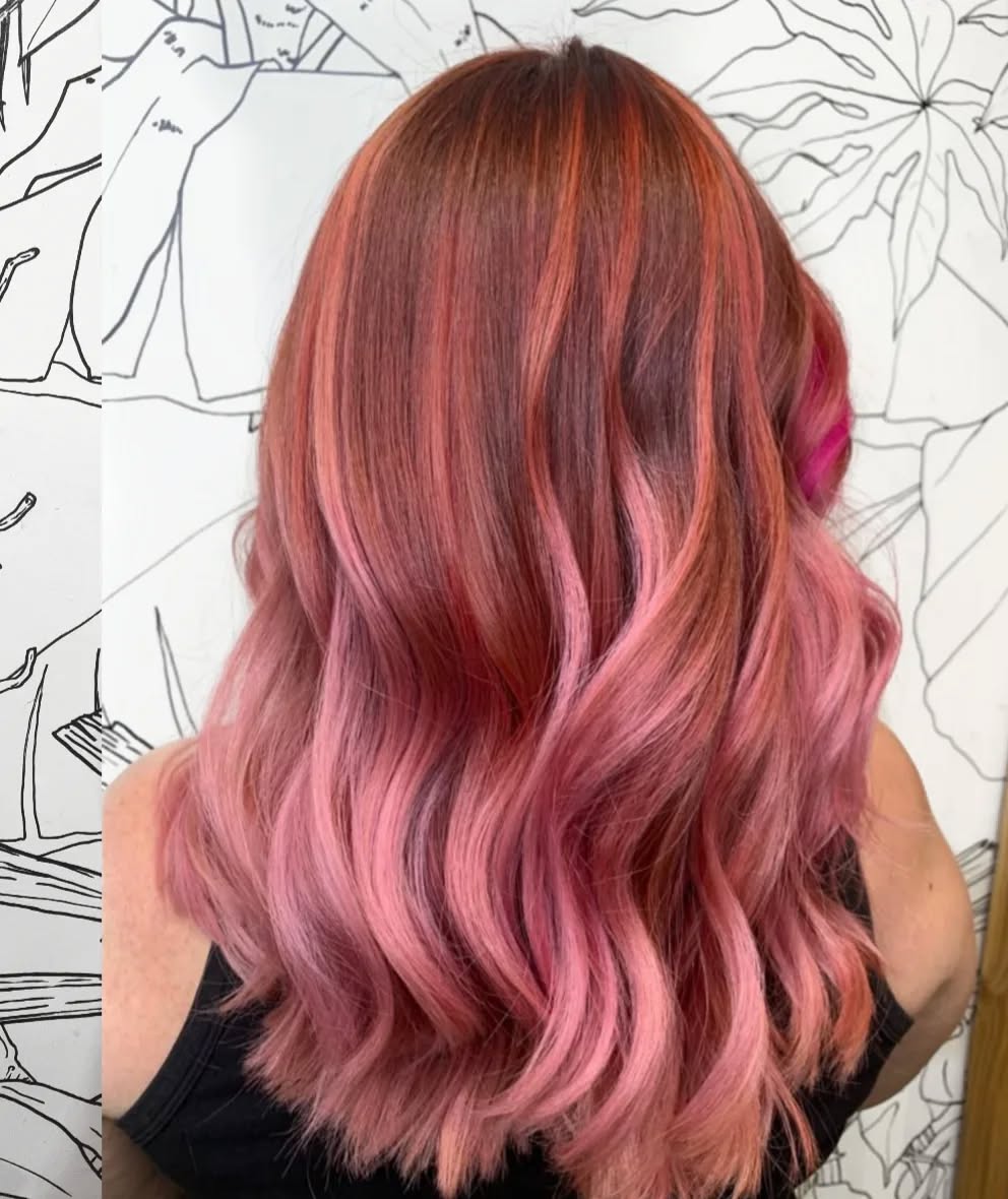 It’s easy to default to cooler, sugary tones like cotton candy or bubble gum. But don’t overlook the warmer side of the spectrum – coral, salmon, and other sun-kissed shades bring their own charm and depth to the look. These warm hues are incredibly flattering against golden blondes and lighten up warm browns.