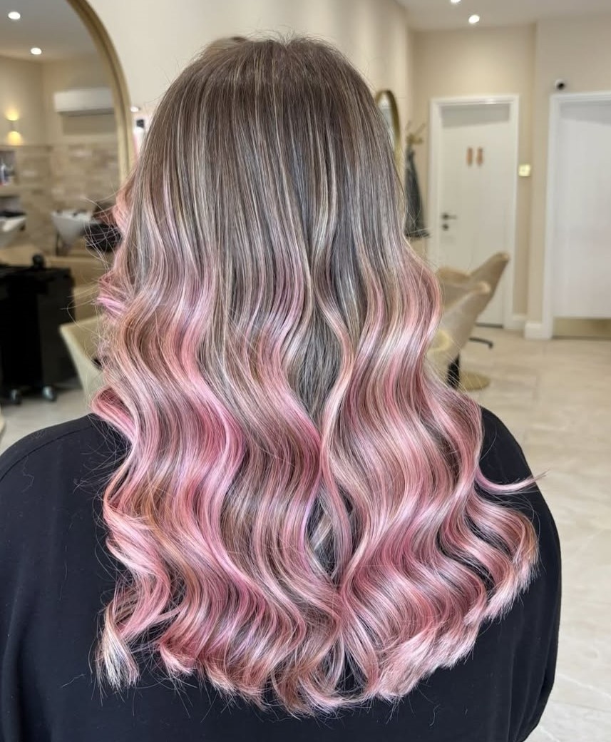 It’s easy to default to cooler, sugary tones like cotton candy or bubble gum. But don’t overlook the warmer side of the spectrum – coral, salmon, and other sun-kissed shades bring their own charm and depth to the look. These warm hues are incredibly flattering against golden blondes and lighten up warm browns.