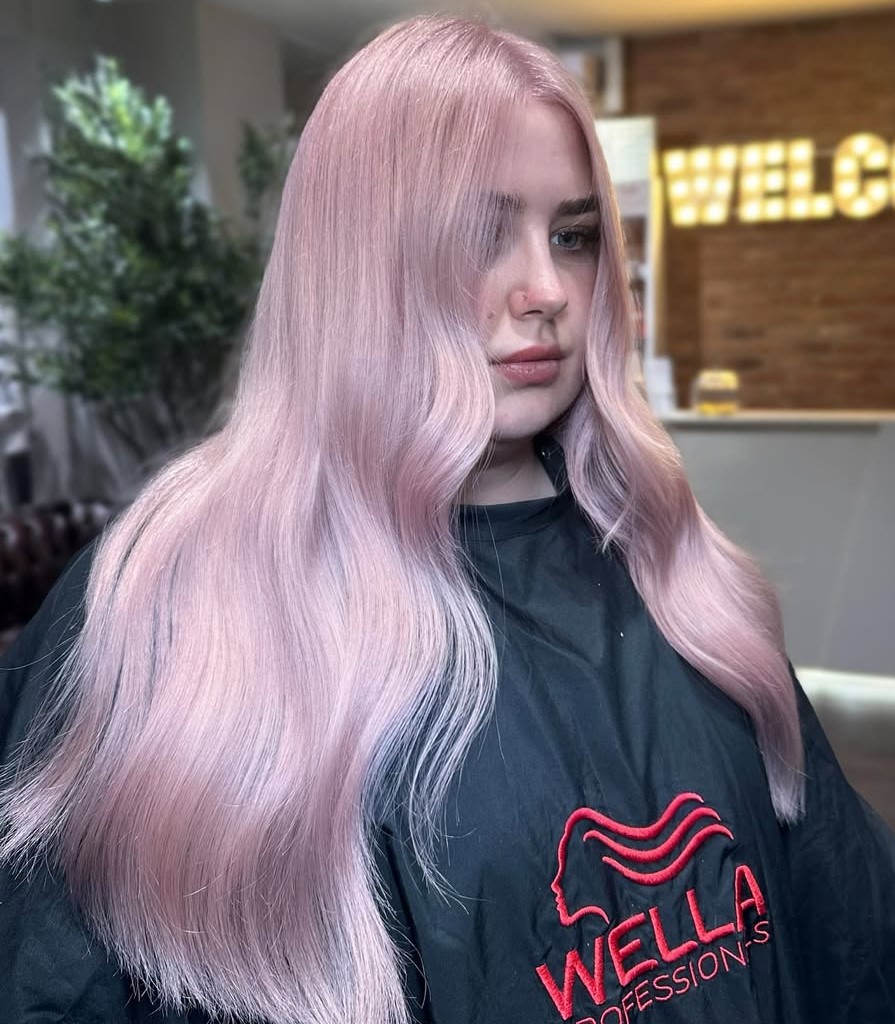 These blonde strands look like they took a dip in a pool of pink milkshake! The pastel shade has a pretty softness to it. This look is really on trend and works perfectly for younger demographics looking for something fun and different.