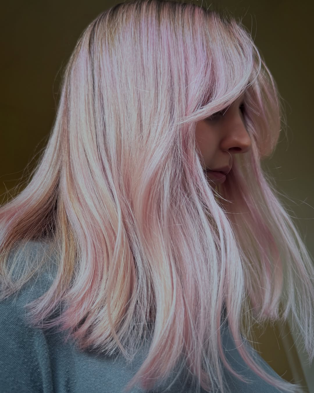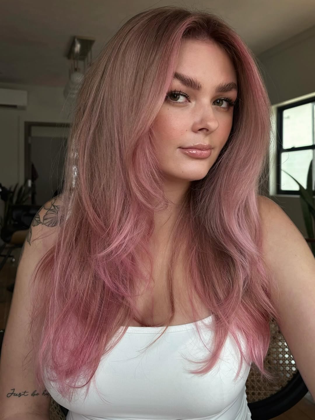 It’s easy to default to cooler, sugary tones like cotton candy or bubble gum. But don’t overlook the warmer side of the spectrum – coral, salmon, and other sun-kissed shades bring their own charm and depth to the look. These warm hues are incredibly flattering against golden blondes and lighten up warm browns.