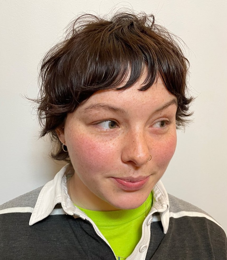 Pixie mullet is a short hair trend you couldn’t miss. It’s always fresh and on-trend, and it’s an excellent choice for round faces. You just need to take into account the nuances of your looks, such as your face shape and expressivity of facial features and choose the right cut accordingly.