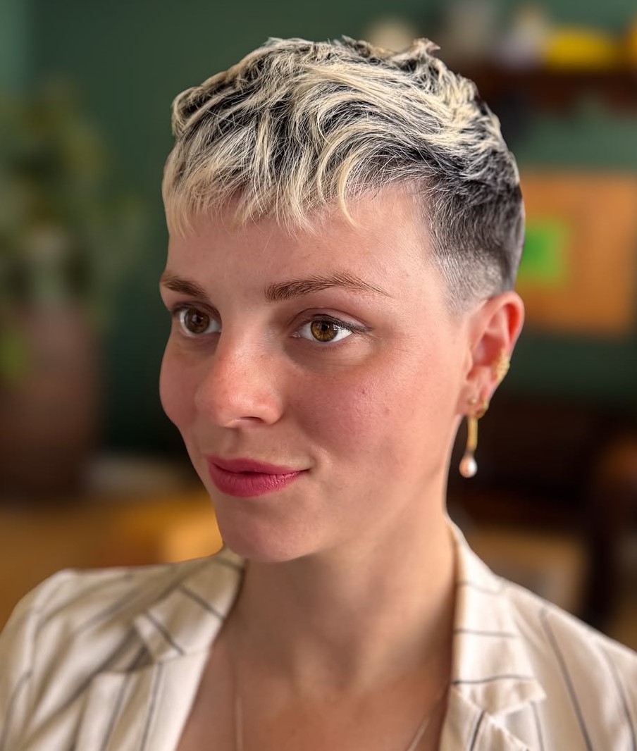 Pixies can go as urban and modern as you dare. Short blonde hair and curtain bang trends aren’t going anywhere soon. Keep the roots darkened for interest and dimension.