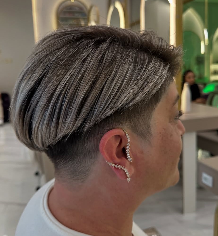 The haircut is achieved thanks to a special technique that suggests cutting your hair shorter at the temples and nape and leaving longer locks on the crown. You may create the asymmetry thanks to long bangs. You may “flip” the bangs with the straightener to keep hair from getting into your eyes and let it frame the face beautifully.