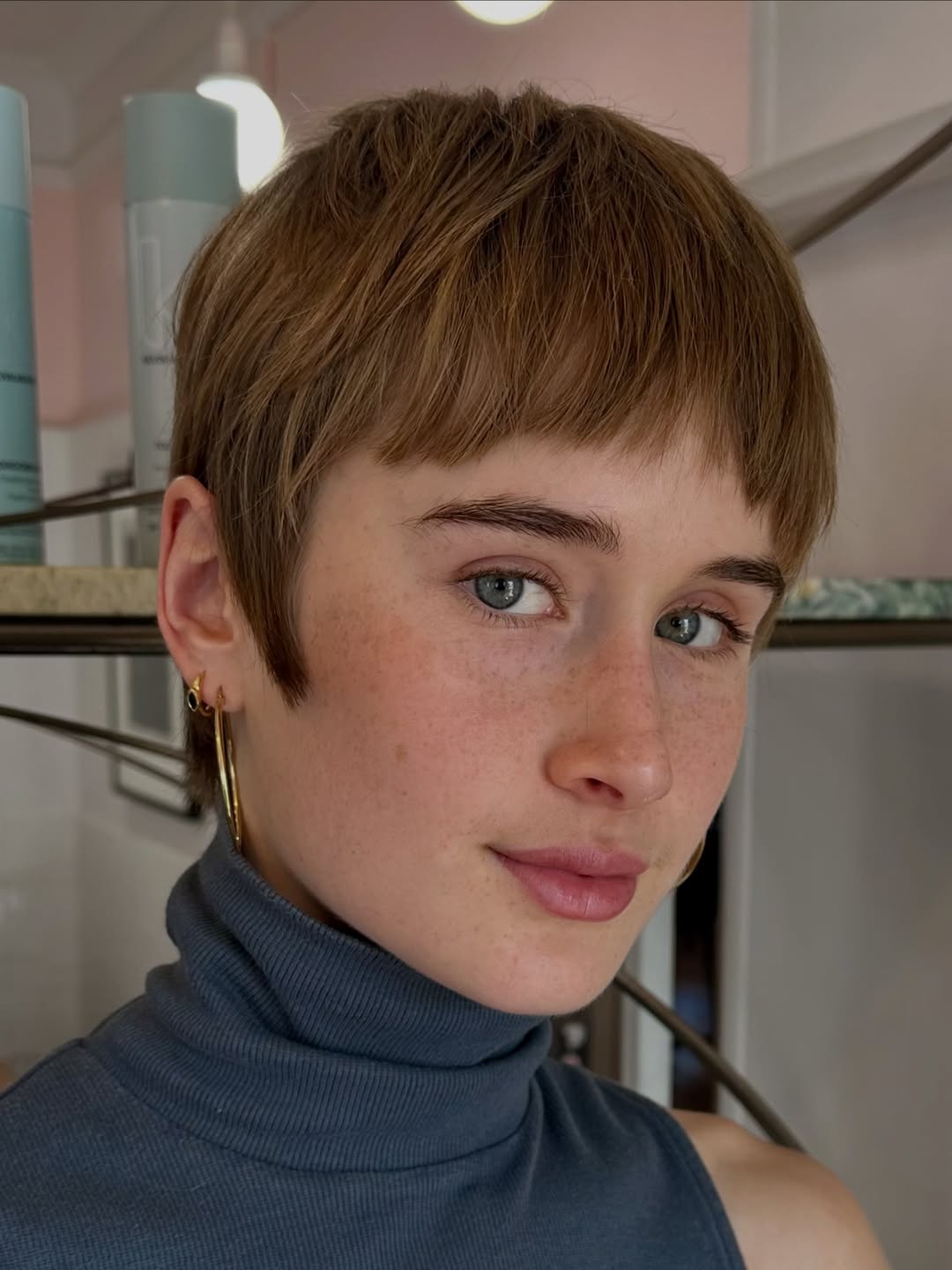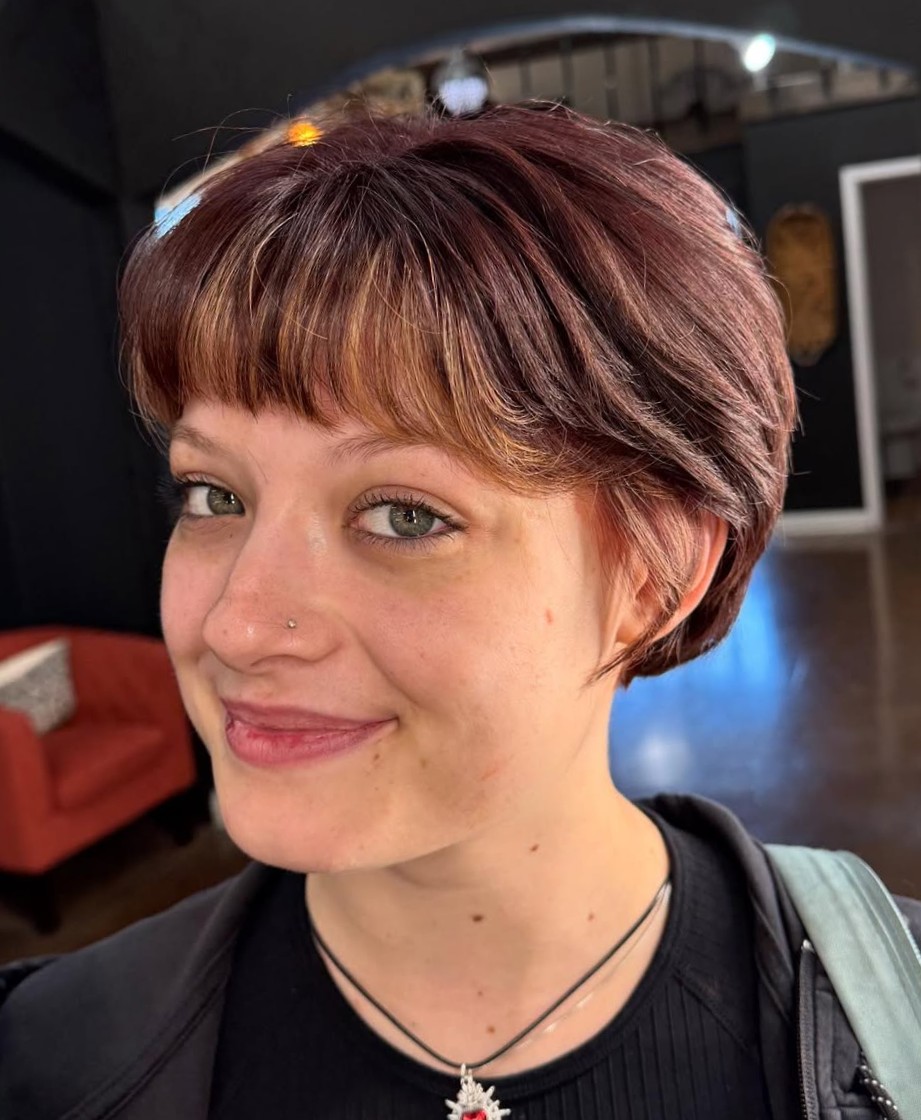 Pixies can go as urban and modern as you dare. Short blonde hair and curtain bang trends aren’t going anywhere soon. Keep the roots darkened for interest and dimension.