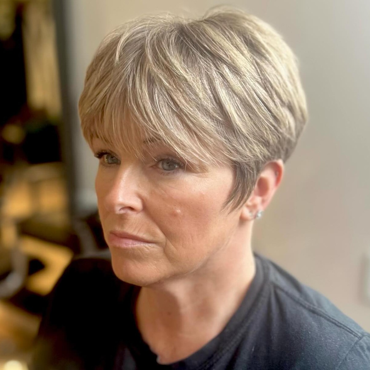 Pixie haircuts for women over 50 don’t have to look like a helmet – they can look current and inspire confidence. You just need to find your perfect short crop and keep it stylish with a suitable product.