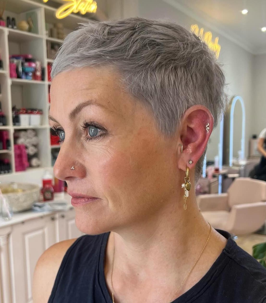 Pixie haircuts for women over 50 don’t have to look like a helmet – they can look current and inspire confidence. You just need to find your perfect short crop and keep it stylish with a suitable product.