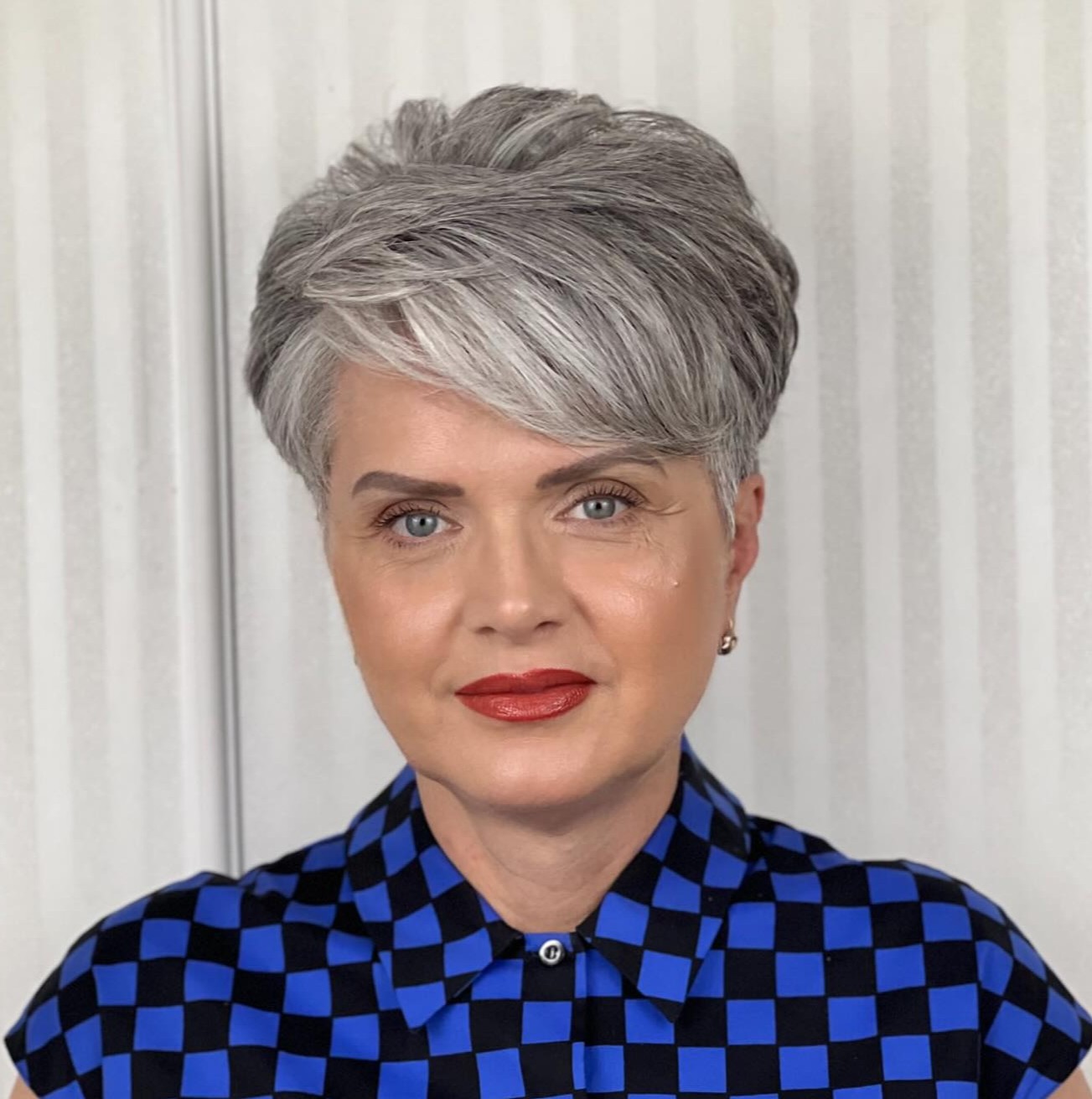 Show off your silver-gray locks by feathering them out towards the back in a wedge shape. Pixie hairstyles for women over 50 are sassy and feminine, and can be styled in a multitude of ways. Change the part; comb it straight down and forward, or slick it back – there’s no shortage of options for everyday wear.