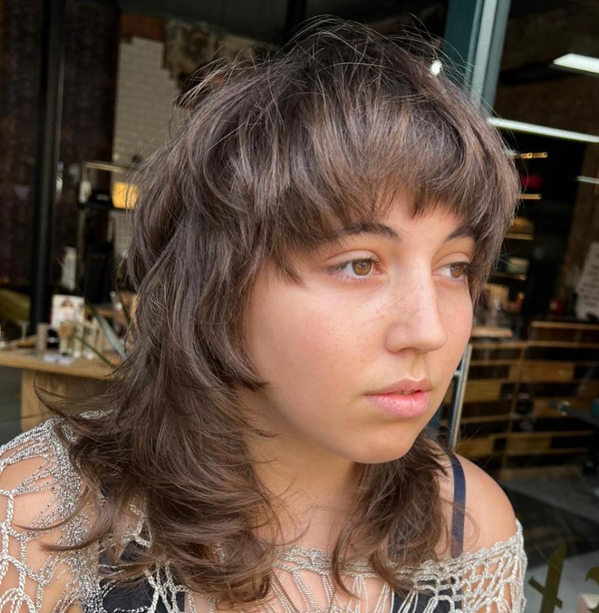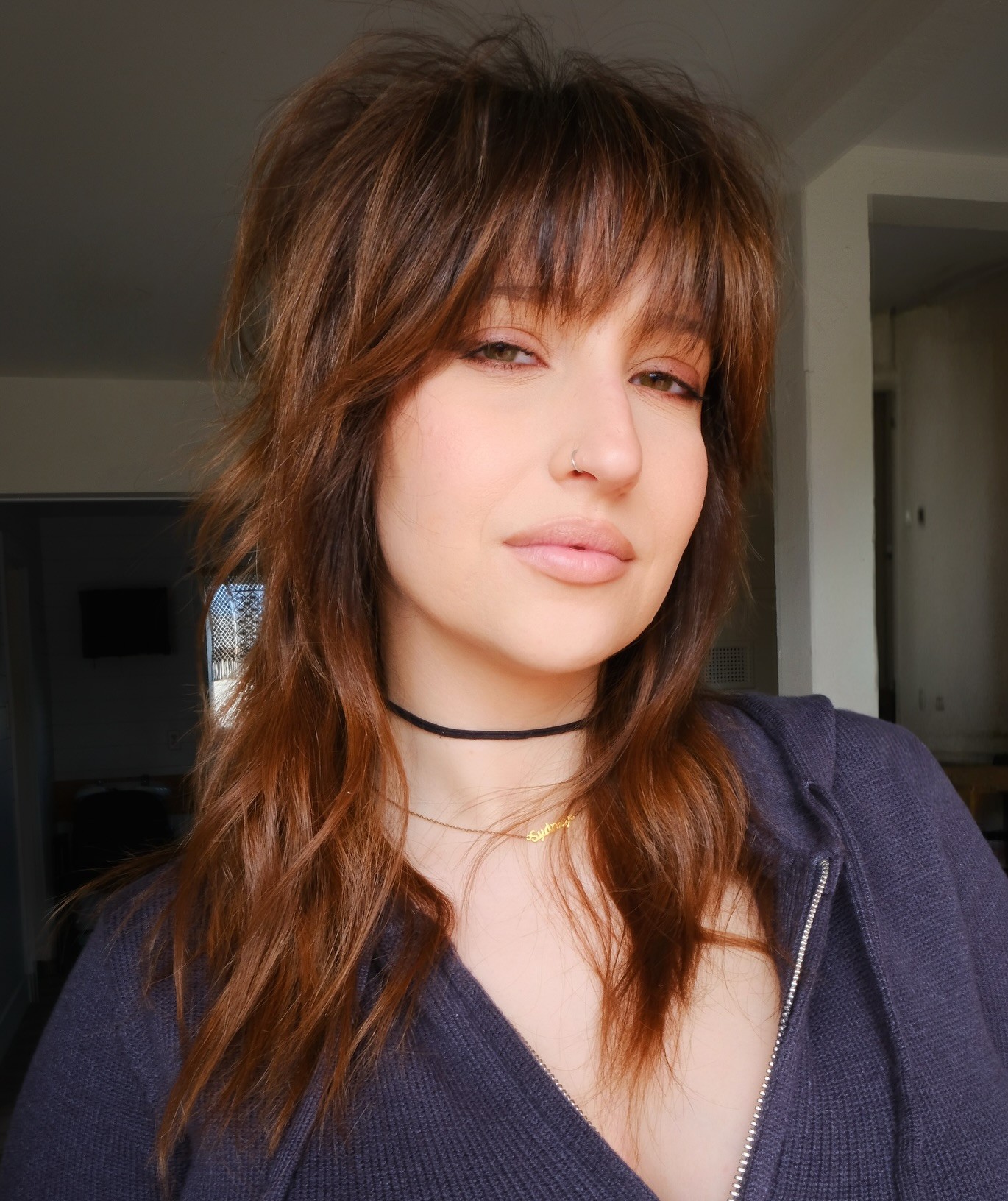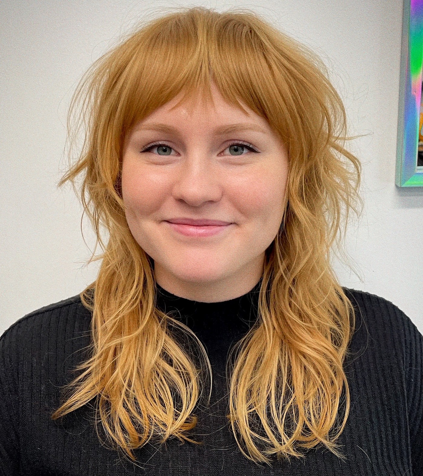 Fringe bangs are perfect for shags because by appearing thin in the front, they make the rest of the style look fuller. Take it to the next level with soft curls that really amp up the volume.