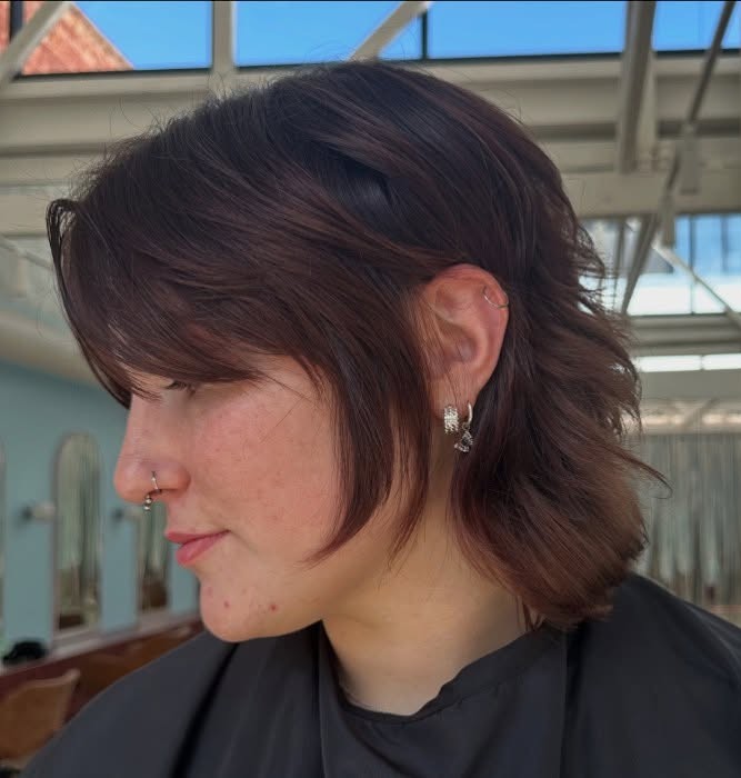 Shags suit any face shape, so you can easily adapt this haircut to your appearance. Bring more texture and movement to a shorter, layered version of the classic bob by implementing choppy layers and wispy bangs.