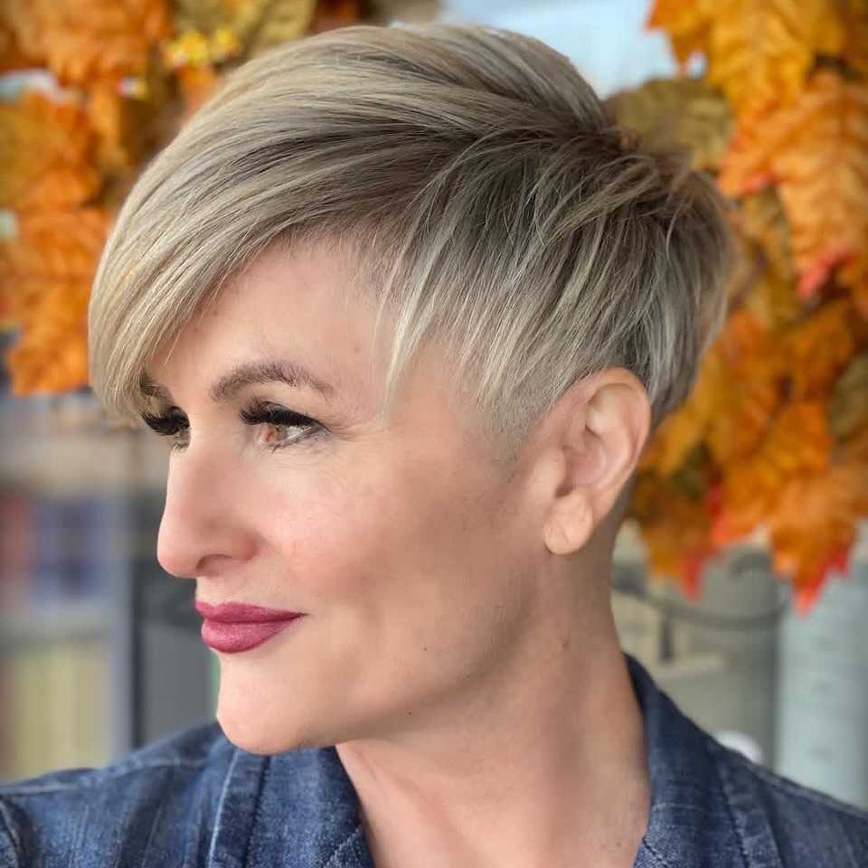 Long pixie haircuts provide more versatility than you may think of, making them suitable for almost all face shapes. They will perfectly match ultra-short sides and natural hair tones enhanced with subtle highlights.