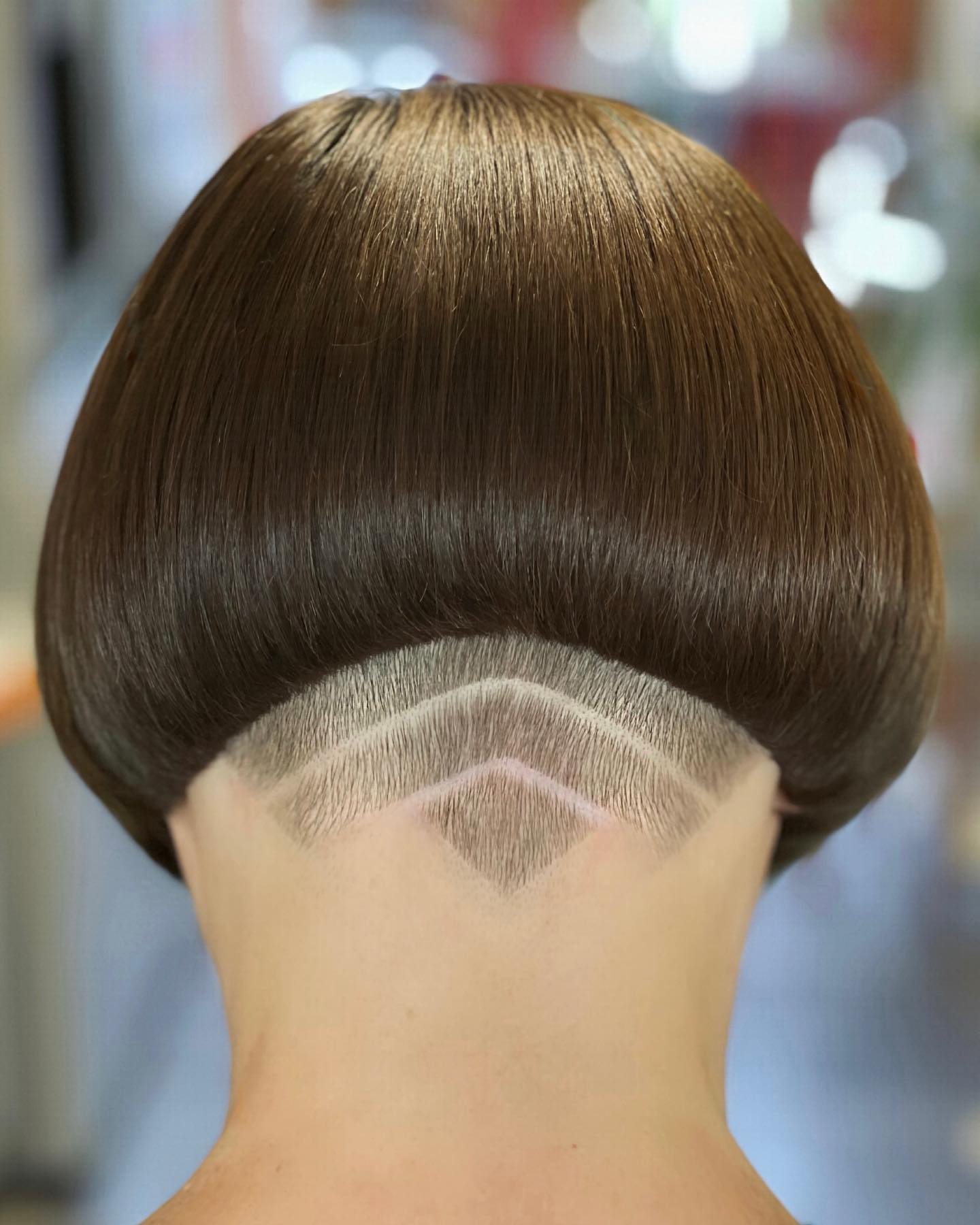 If you want to show off your jawline, this sleek bob with all-around undercut will definitely complement your face! The even layers swept to the back with a longer piece brushed along your cheek create a cool contrast against the shaved underside.