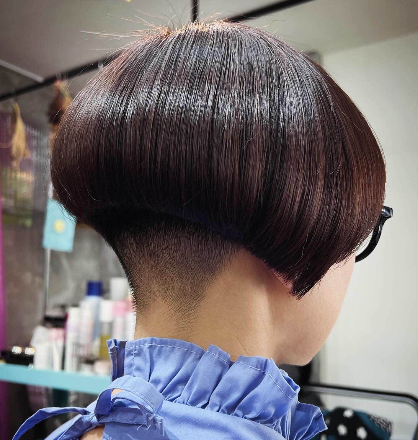 If you want to show off your jawline, this sleek bob with all-around undercut will definitely complement your face! The even layers swept to the back with a longer piece brushed along your cheek create a cool contrast against the shaved underside.